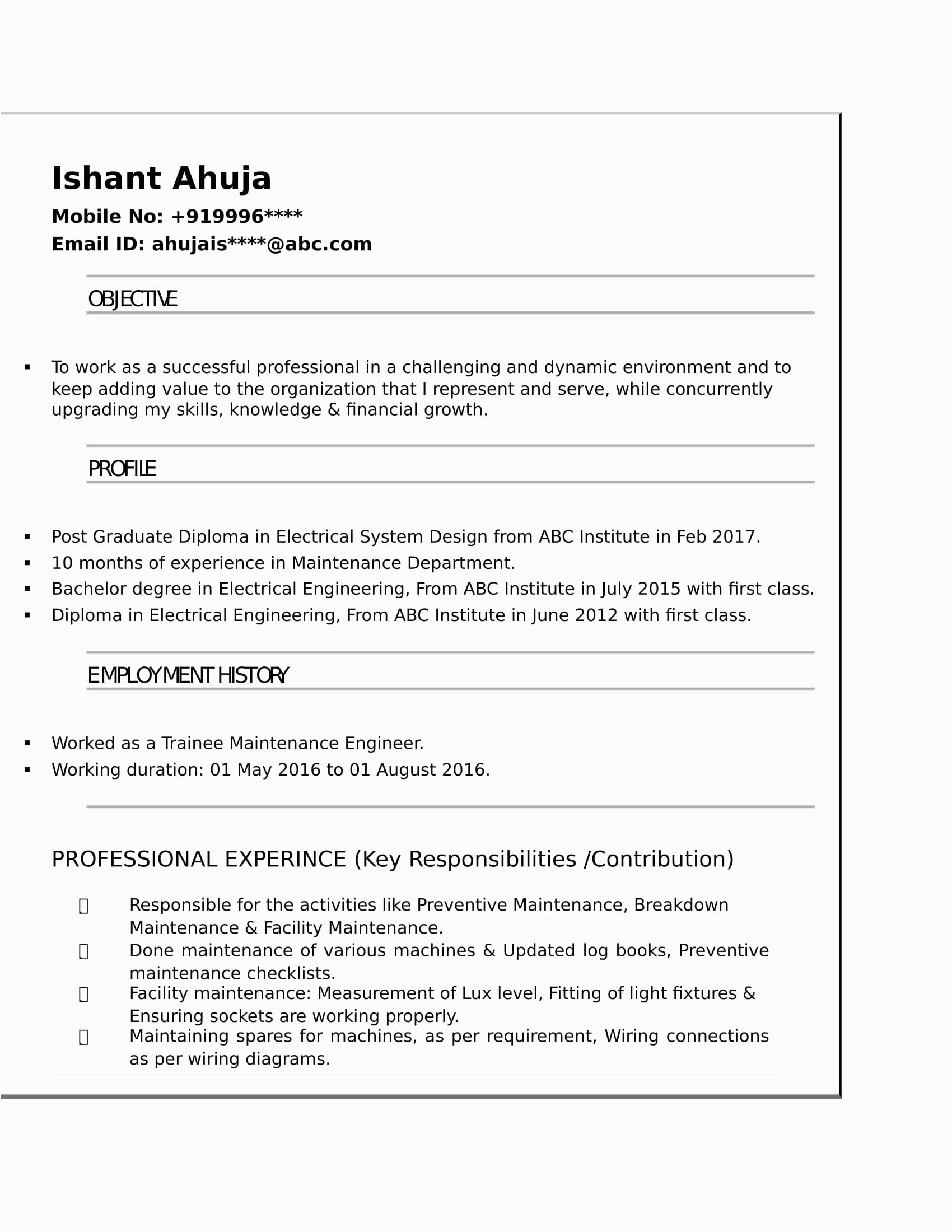 There are thus many options for you as you search for the perfect sample resume for diploma electrical engineer, and bearing in mind some hard bill and perseverance upon your part, you will locate yourself next a first-class resume in no time, and hopefully, a first-class employer, as well!. For more suggestion upon resumes or for a sample resume for diploma electrical engineer checkout this recommended websites.