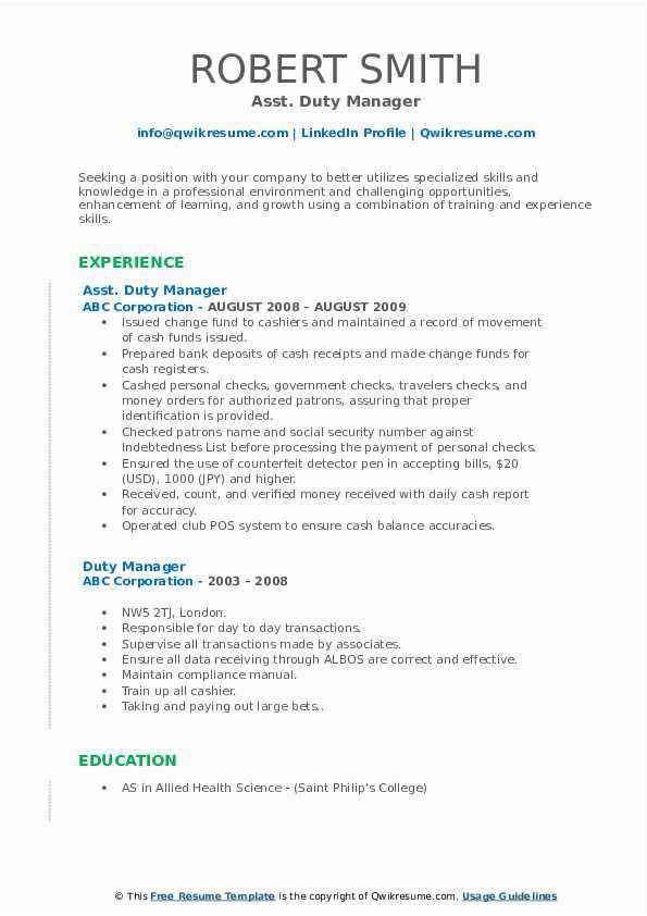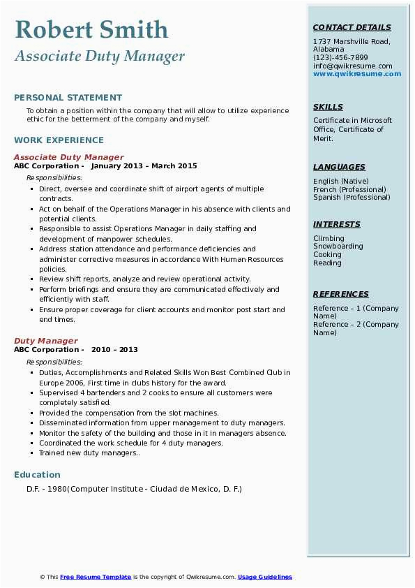 There are suitably many options for you as you search for the absolute sample resume for duty manager position, and in the same way as some difficult decree and perseverance upon your part, you will locate yourself gone a first-class resume in no time, and hopefully, a first-class employer, as well!. For more guidance on resumes or for a sample resume for duty manager position checkout this recommended websites.