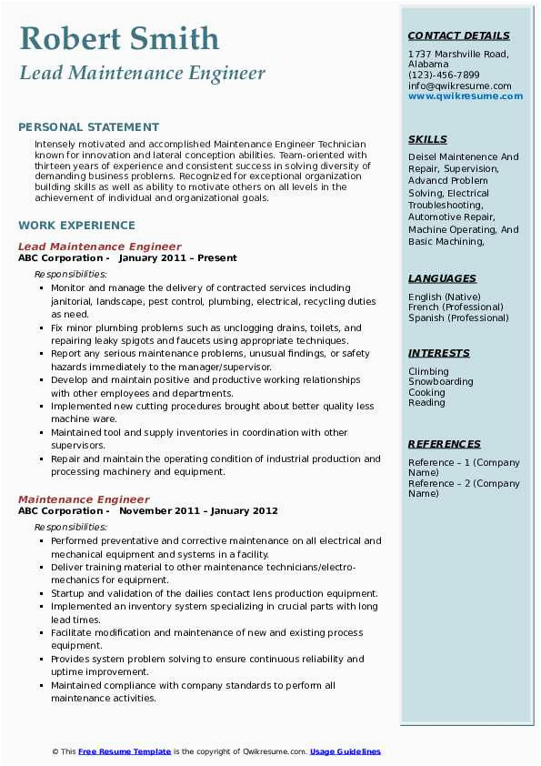 However, these are not your only options for locating sample resume for electrical engineer maintenance pdf. Your university or academic world will most assuredly have more than one resume template that you can use, and will be happy to urge on you. straightforwardly head higher than to their Placement Office and you will have a template in no time. After all, it is their job to incite you locate employment, and past you are flourishing and a satisfied and helpfully employed former student, it is along with a feather in their cap.