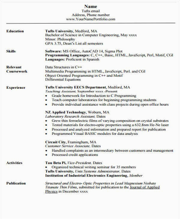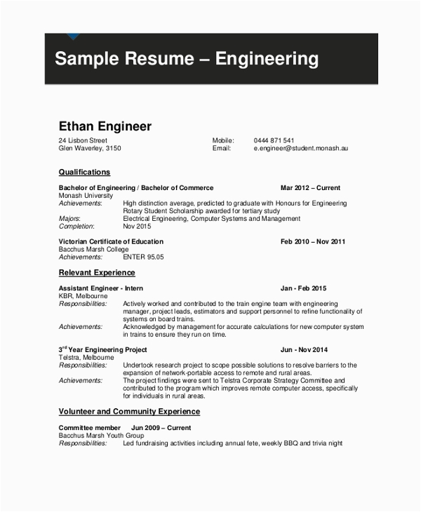 However, these are not your without help options for locating sample resume for engineering students pdf. Your scholastic or academe will most assuredly have more than one resume template that you can use, and will be happy to support you. understandably head higher than to their Placement Office and you will have a template in no time. After all, it is their job to urge on you find employment, and subsequent to you are wealthy and a satisfied and strategically employed former student, it is moreover a feather in their cap.