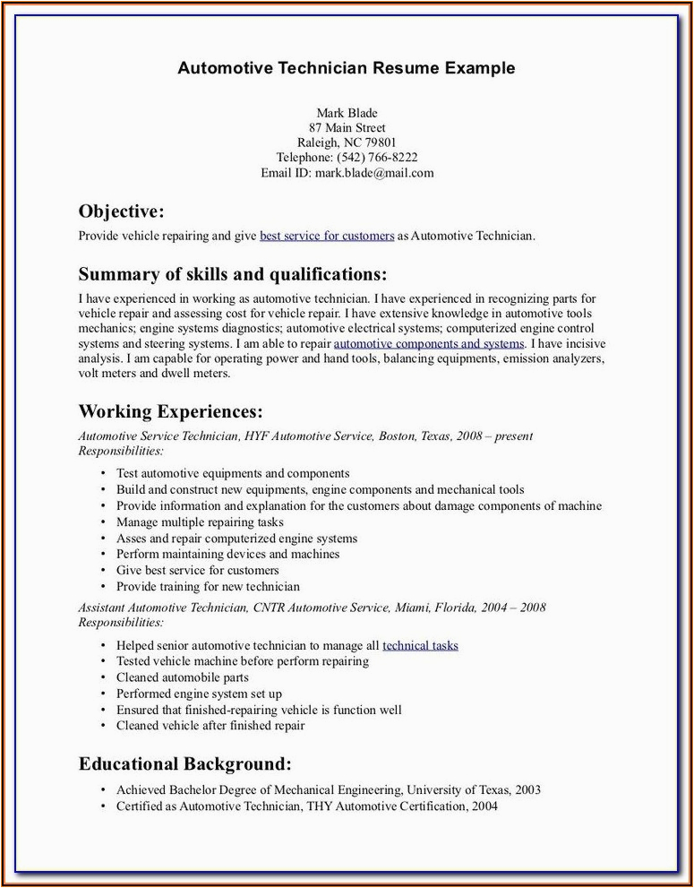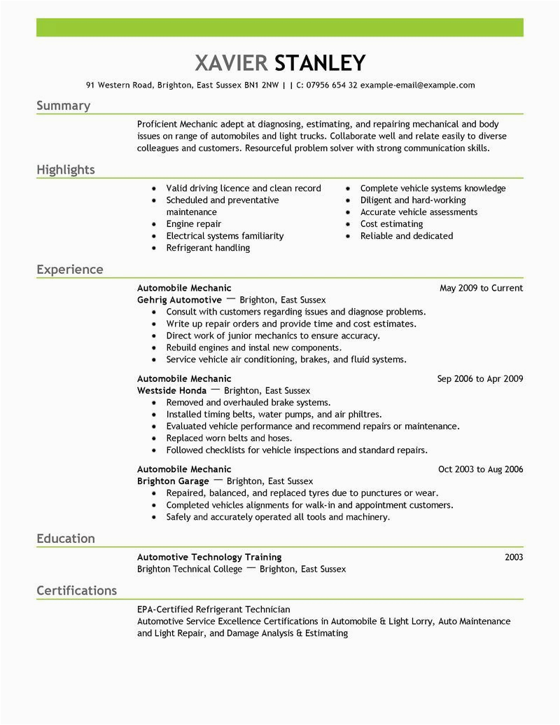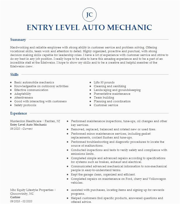 9 photos of the Sample Resume for Entry Level Automotive Technician