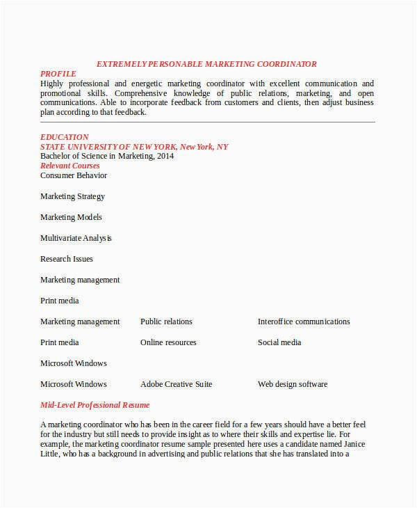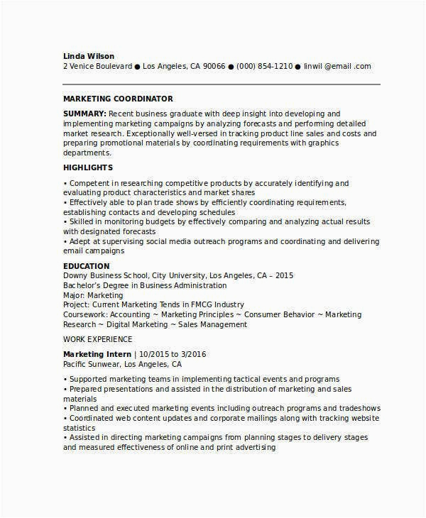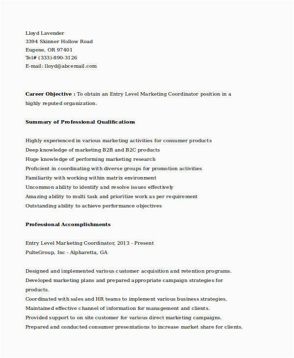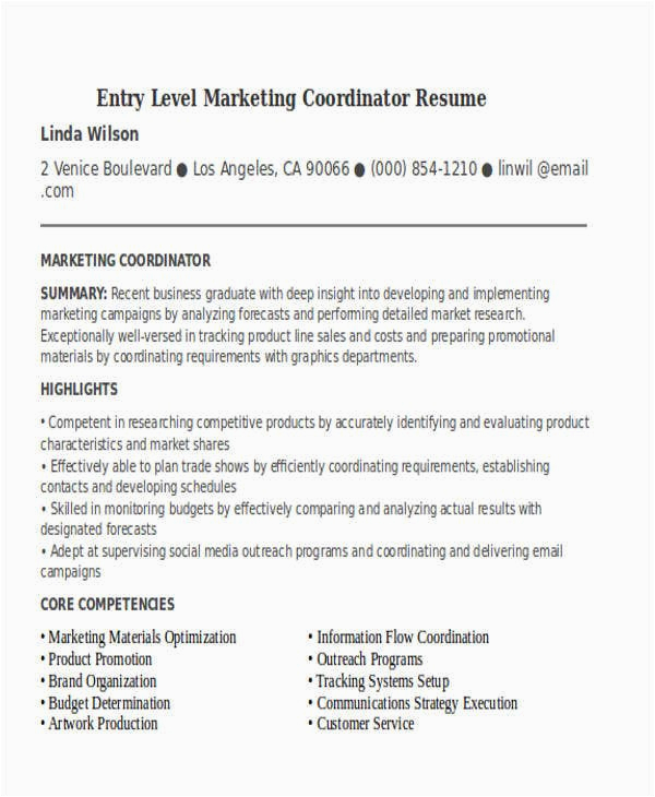 9 photos of the Sample Resume for Entry Level Marketing Coordinator