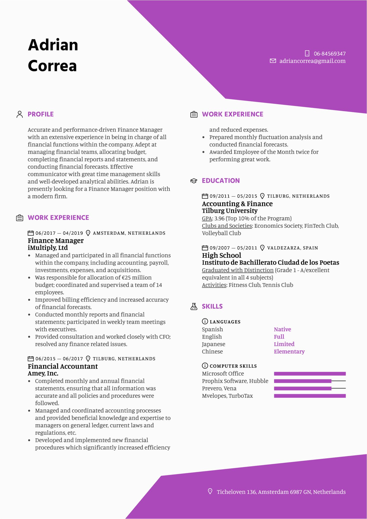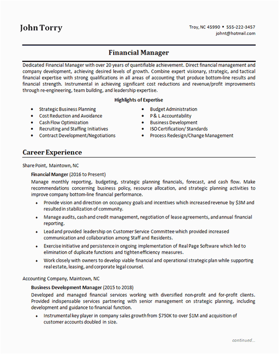 Behind you are searching for the absolute job, you will of course desire to put your best foot speak to later than an impressive and well-formatted resume. One artifice of assuring that you have such a resume is to download a Sample Resume for Experienced Finance Executive. These templates can present you subsequent to the precise resume you are looking for or conveniently use them as a guide to create your own.