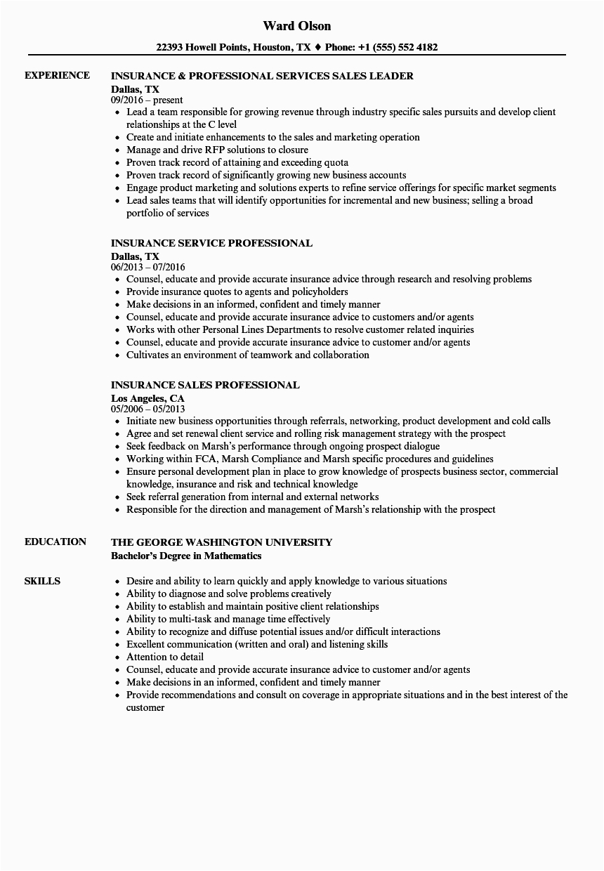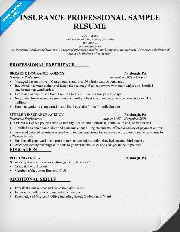 Insurance Professional Resume Sample resume panion