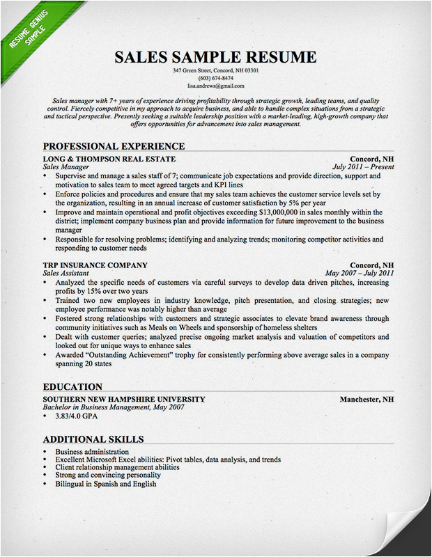 Insurance Sales Resume Sample