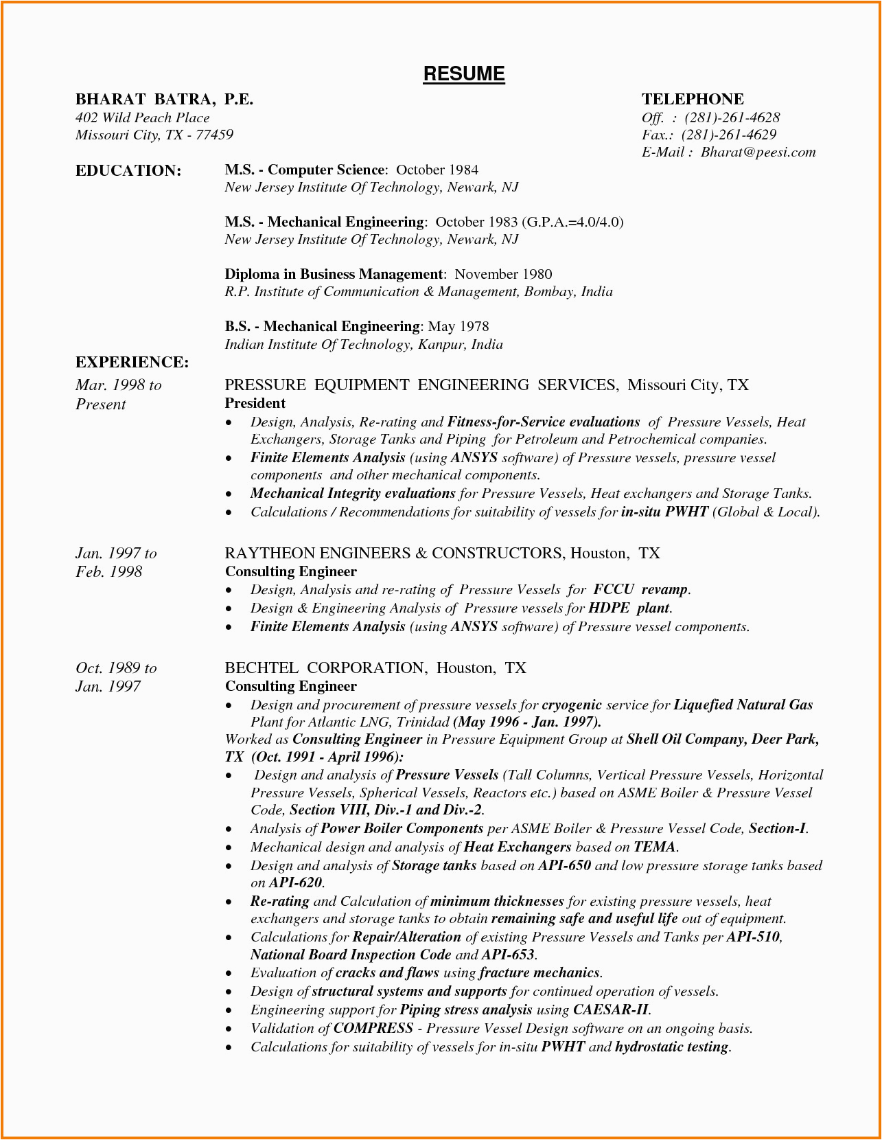 You could moreover download a template from the Internet; there are an abundance of websites where you will be clever to locate a Sample Resume for Experienced Mechanical Engineer, either to usefully peruse or to download and use.