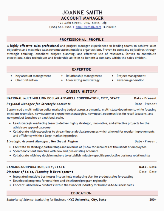 Back To Sample Resume for Experienced Sales and Marketing Professional