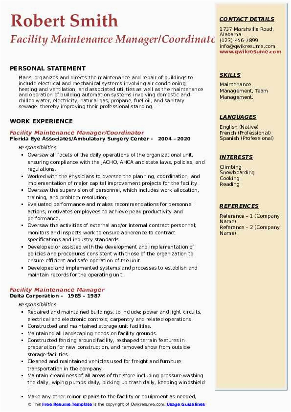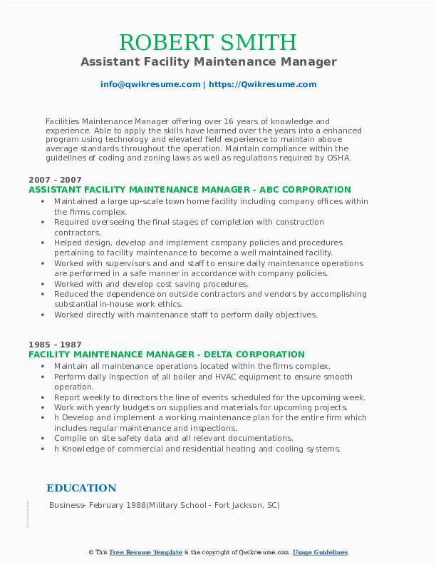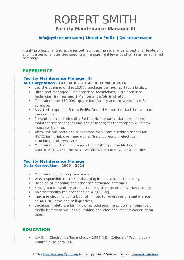 9 photos of the Sample Resume for Facility Maintenance Manager