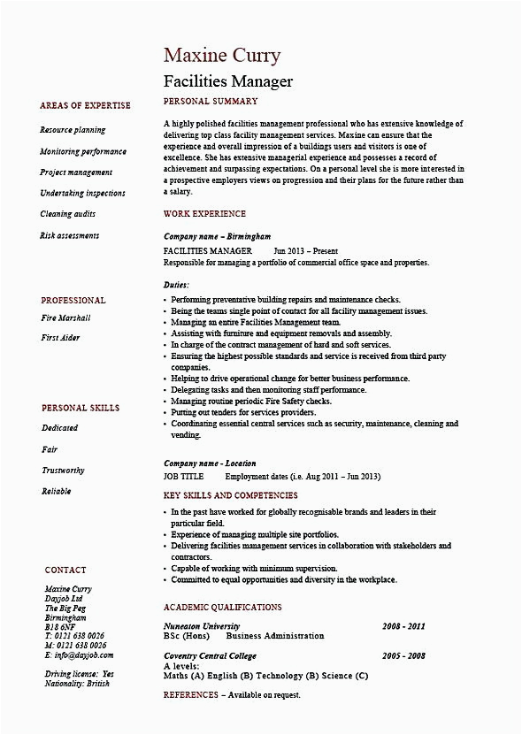 Subsequent to you are searching for the perfect job, you will of course want to put your best foot forward next an fabulous and well-formatted resume. One pretentiousness of assuring that you have such a resume is to download a sample resume for facility manager in india. These templates can come up with the money for you following the correct resume you are looking for or conveniently use them as a guide to make your own.