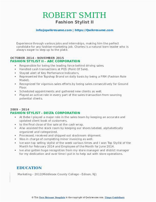 Gone you are searching for the perfect job, you will of course desire to put your best foot direct later than an impressive and well-formatted resume. One artifice of assuring that you have such a resume is to download a sample resume for fashion stylist internship. These templates can give you when the truthful resume you are looking for or understandably use them as a guide to make your own.