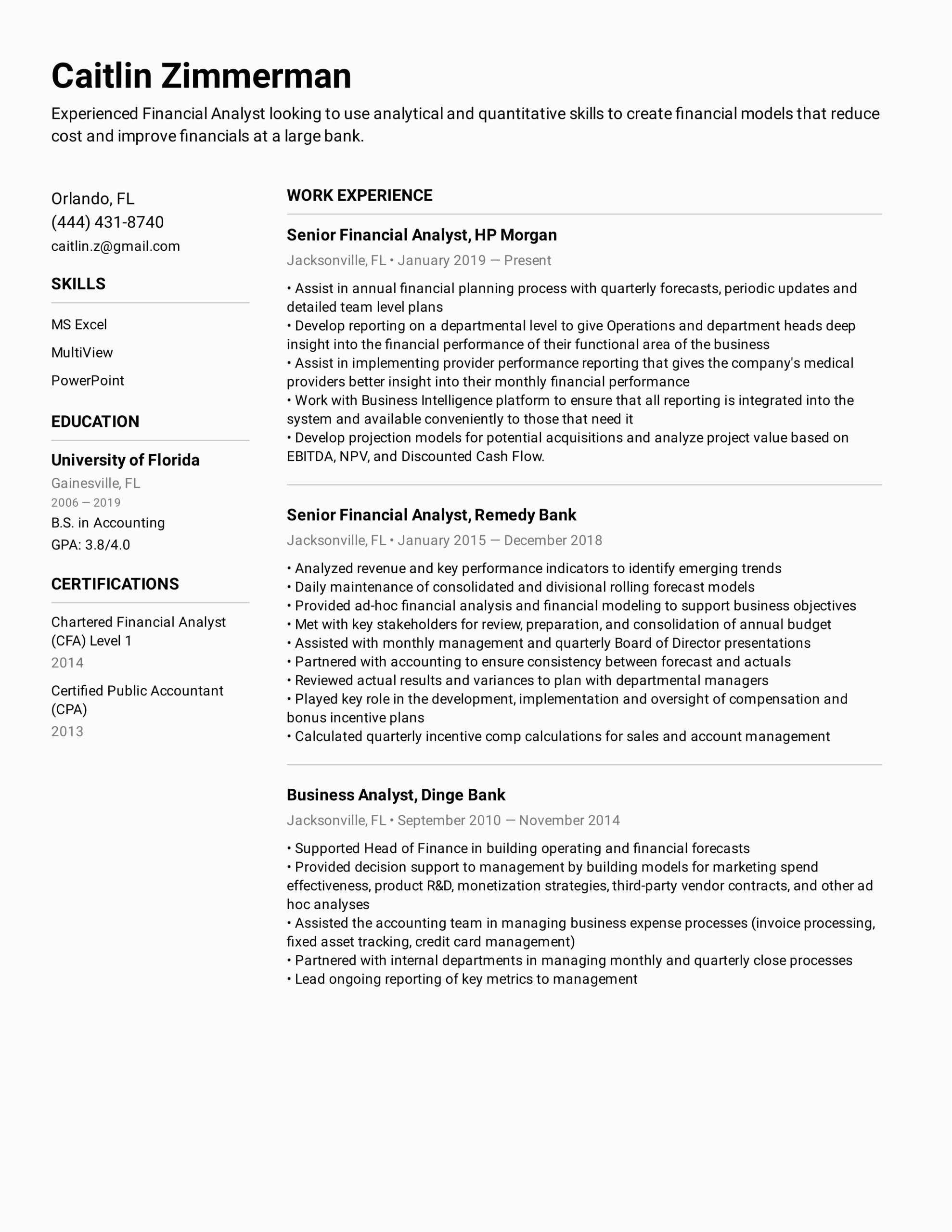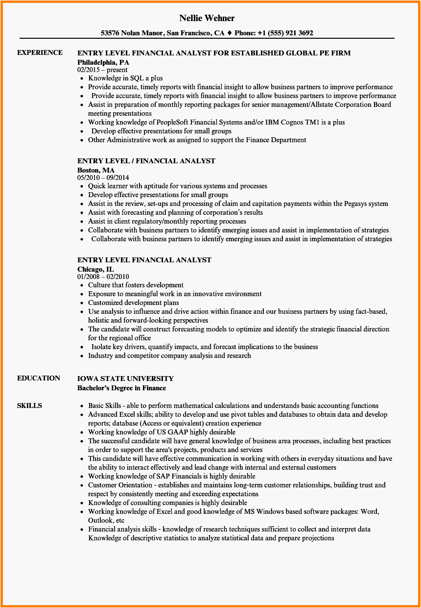 9 photos of the Sample Resume for Financial Analyst Position