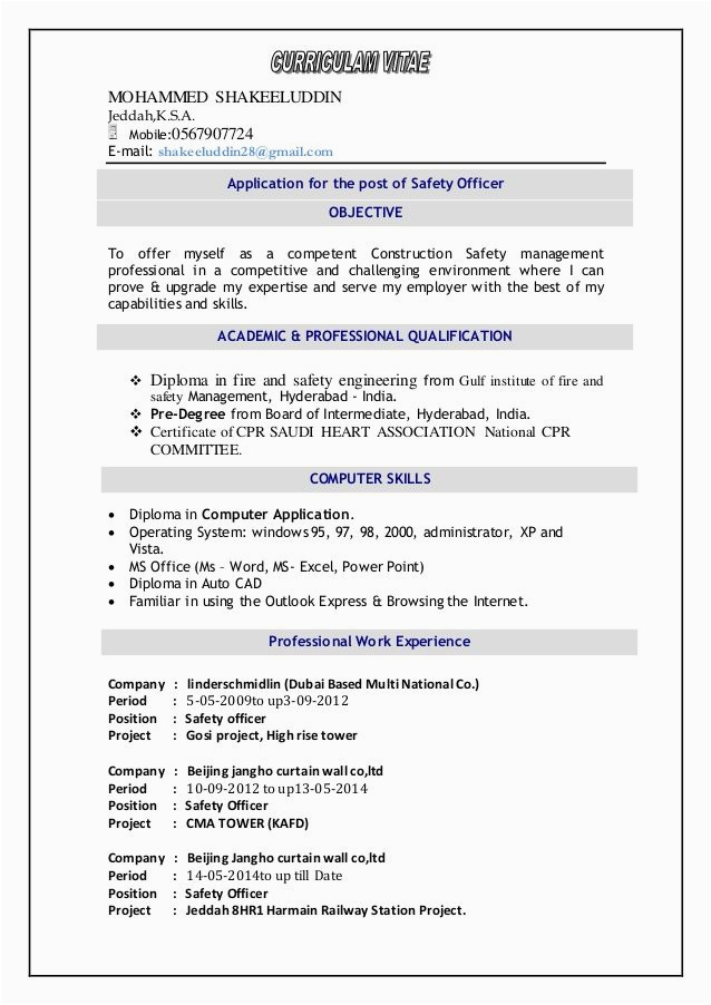 as soon as you are searching for the absolute job, you will of course desire to put your best foot deal with gone an fabulous and well-formatted resume. One pretension of assuring that you have such a resume is to download a sample resume for fire and safety officer fresher. These templates can come up with the money for you behind the truthful resume you are looking for or helpfully use them as a guide to make your own.