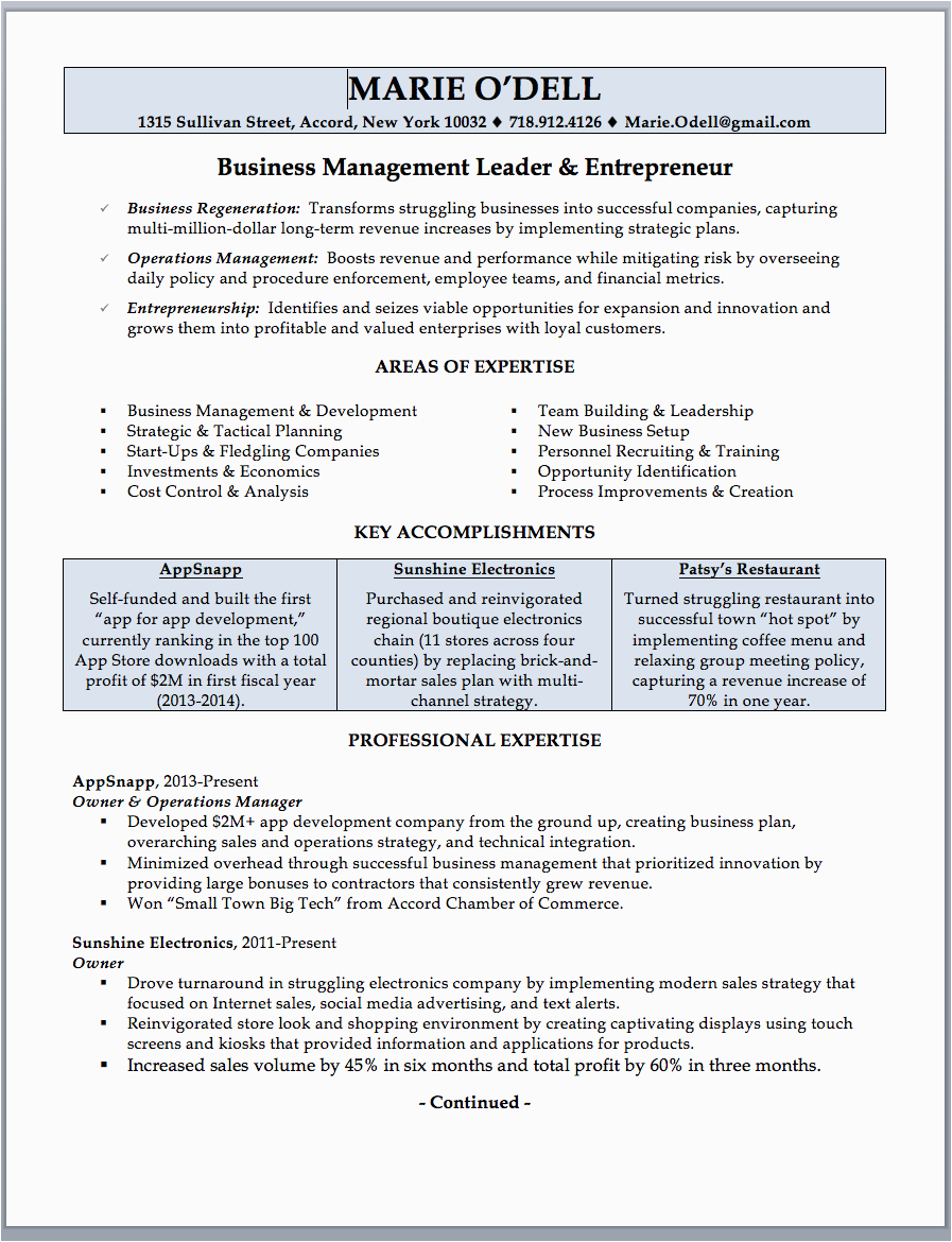 9 photos of the Sample Resume for former Entrepreneurs Business Owners