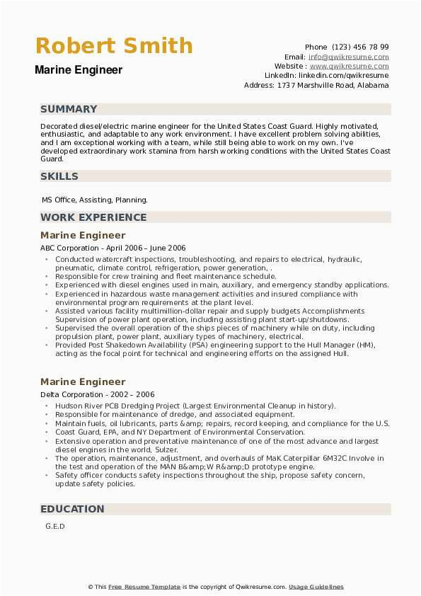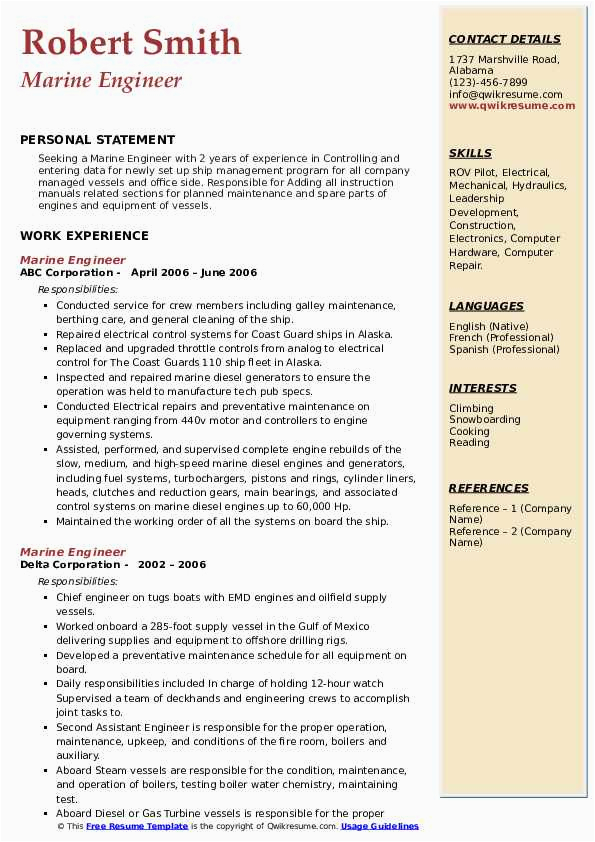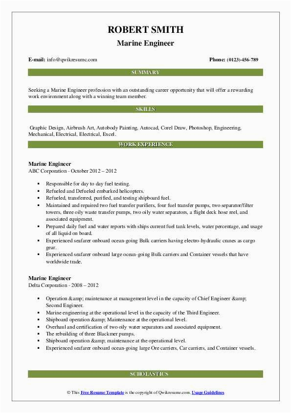 9 photos of the Sample Resume for Fresh Graduate Marine Engineering