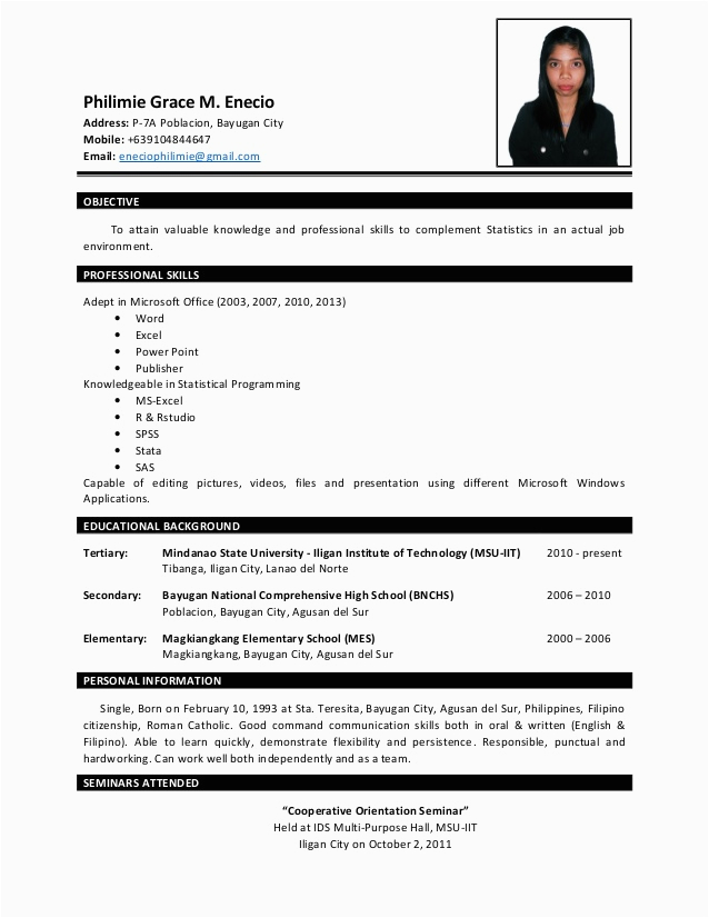 9 photos of the Sample Resume for Fresh Graduate Mathematics