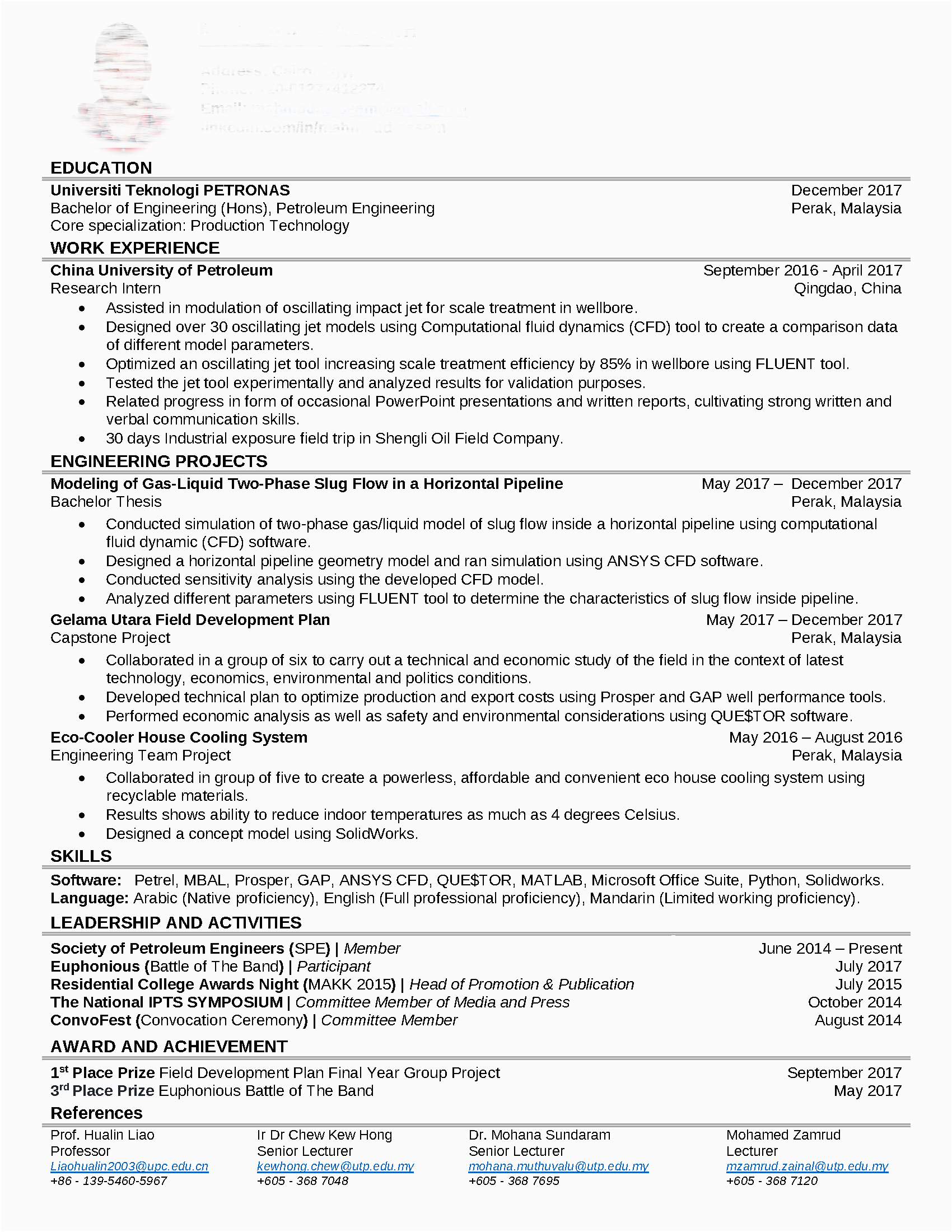 9 photos of the Sample Resume for Fresh Graduate Petroleum Engineer