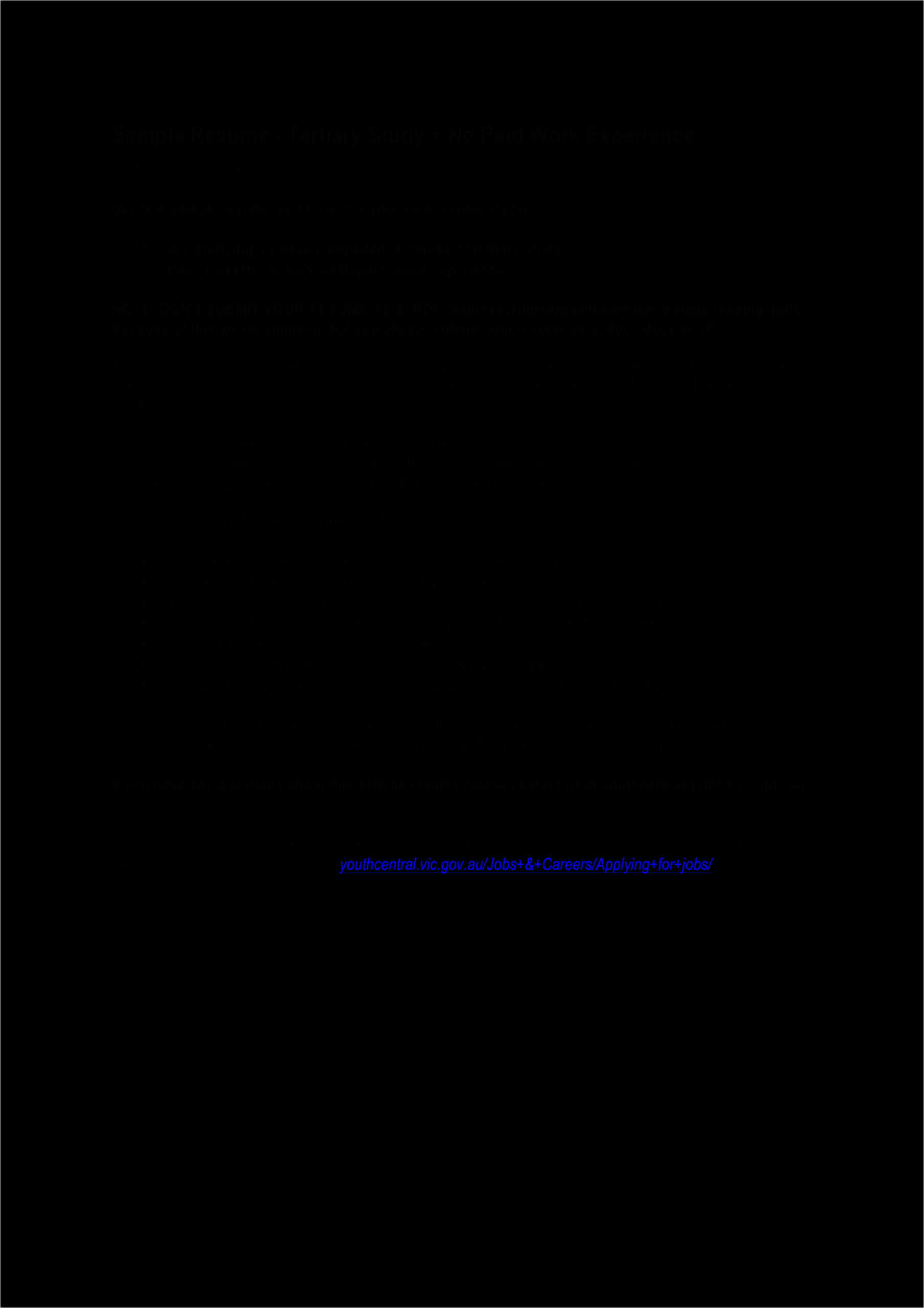However, these are not your lonely options for locating sample resume for fresh graduate without work experience. Your scholarly or the academy will most assuredly have more than one resume template that you can use, and will be happy to urge on you. handily head on top of to their Placement Office and you will have a template in no time. After all, it is their job to incite you find employment, and like you are wealthy and a satisfied and helpfully employed former student, it is furthermore a feather in their cap.
