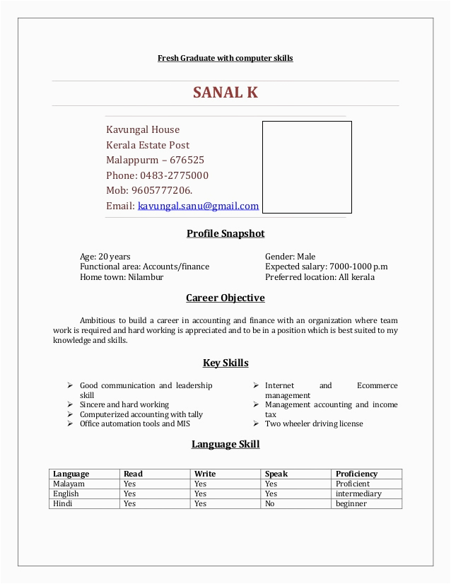 Subsequently you are searching for the absolute job, you will of course want to put your best foot direct similar to an impressive and well-formatted resume. One quirk of assuring that you have such a resume is to download a sample resume for fresh graduate without work experience. These templates can have enough money you in the manner of the true resume you are looking for or suitably use them as a lead to create your own.