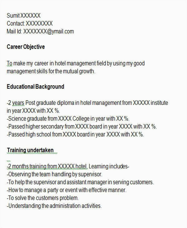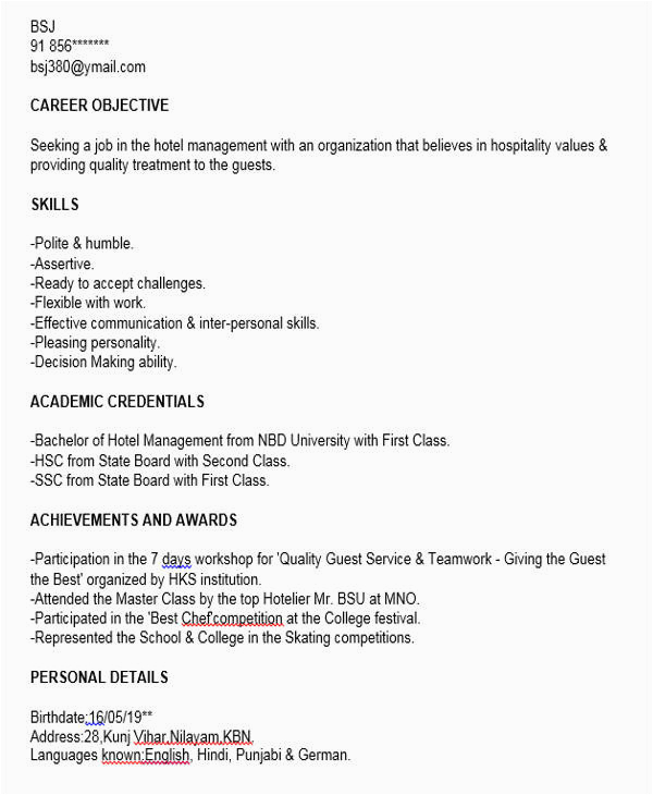 9 photos of the Sample Resume for Freshers In Hospitality Industry
