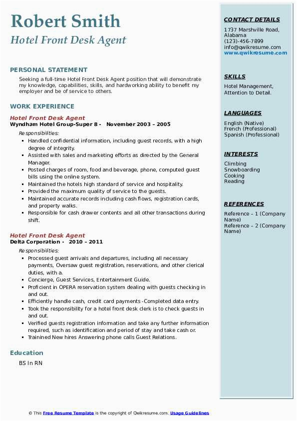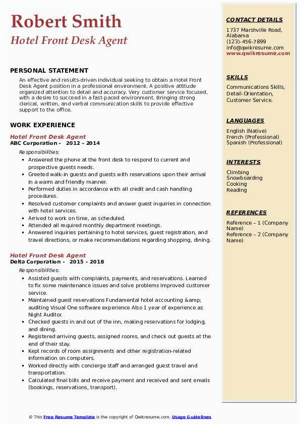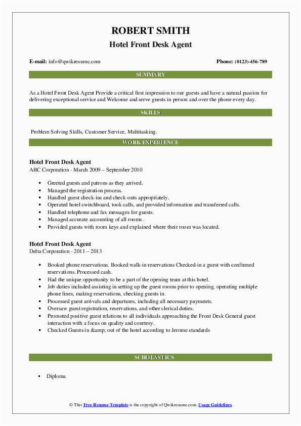 9 photos of the Sample Resume for Front Desk Agent Hotel