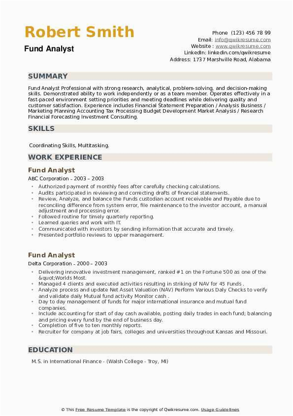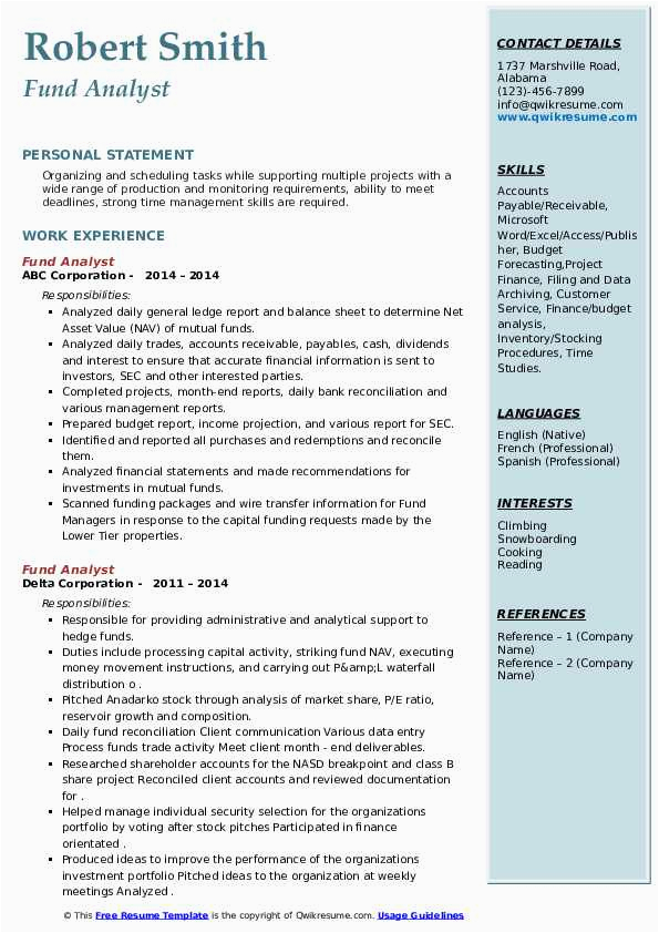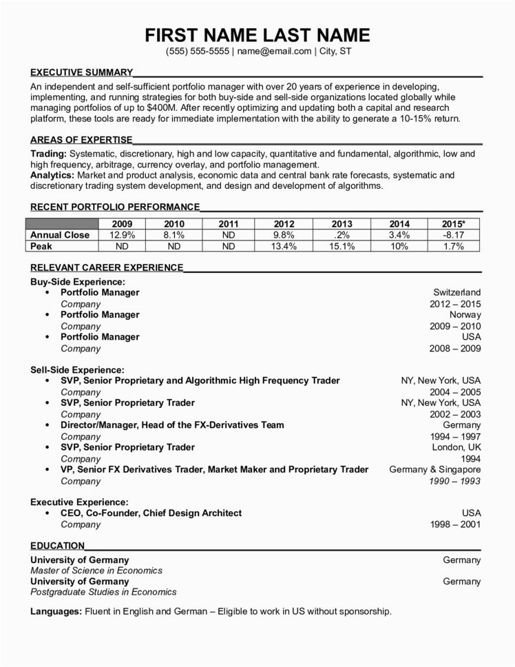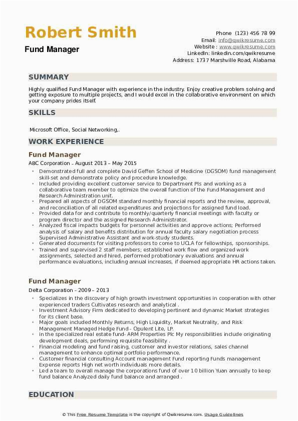 9 photos of the Sample Resume for Fund Of Fund Investor