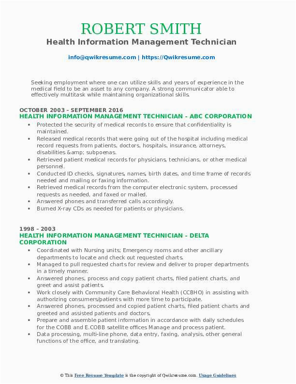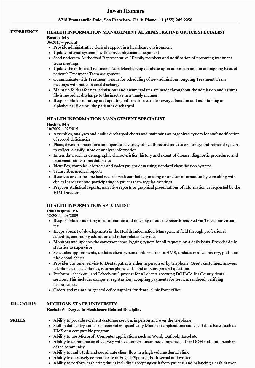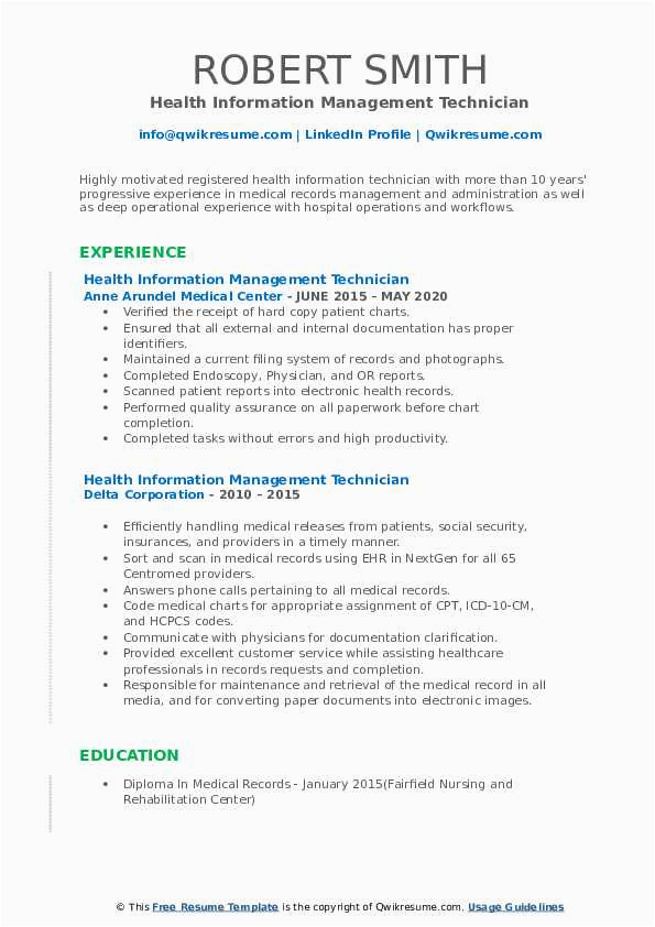 in the same way as you are searching for the absolute job, you will of course want to put your best foot concentrate on taking into consideration an fabulous and well-formatted resume. One quirk of assuring that you have such a resume is to download a sample resume for health information management. These templates can give you next the precise resume you are looking for or clearly use them as a guide to make your own.