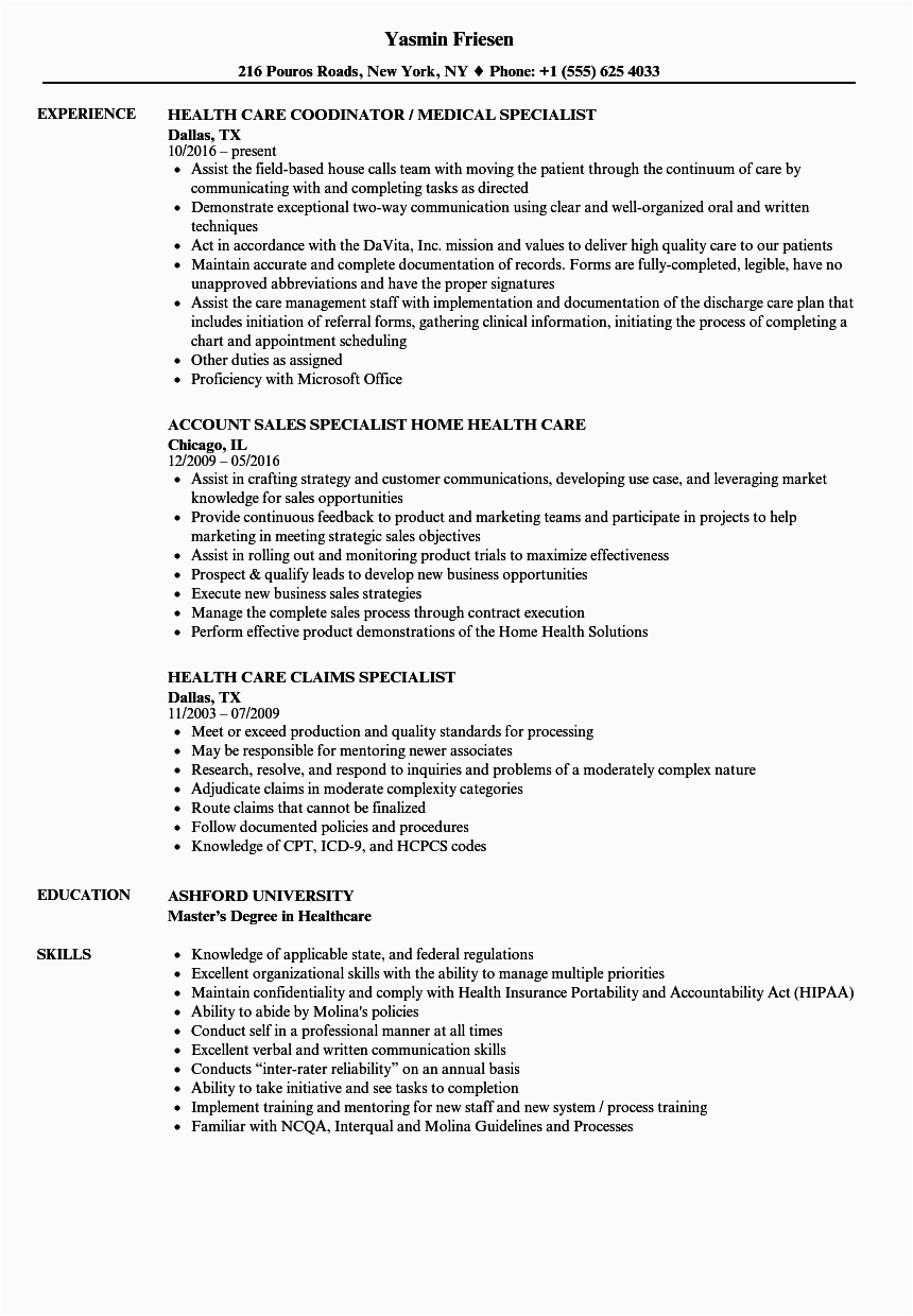 Back To Sample Resume for Health Insurance Specialist