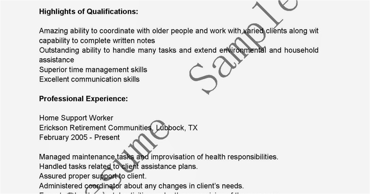 There are hence many options for you as you search for the absolute sample resume for home support worker, and following some hard act out and perseverance on your part, you will locate yourself next a first-class resume in no time, and hopefully, a first-class employer, as well!. For more counsel on resumes or for a sample resume for home support worker checkout this recommended websites.