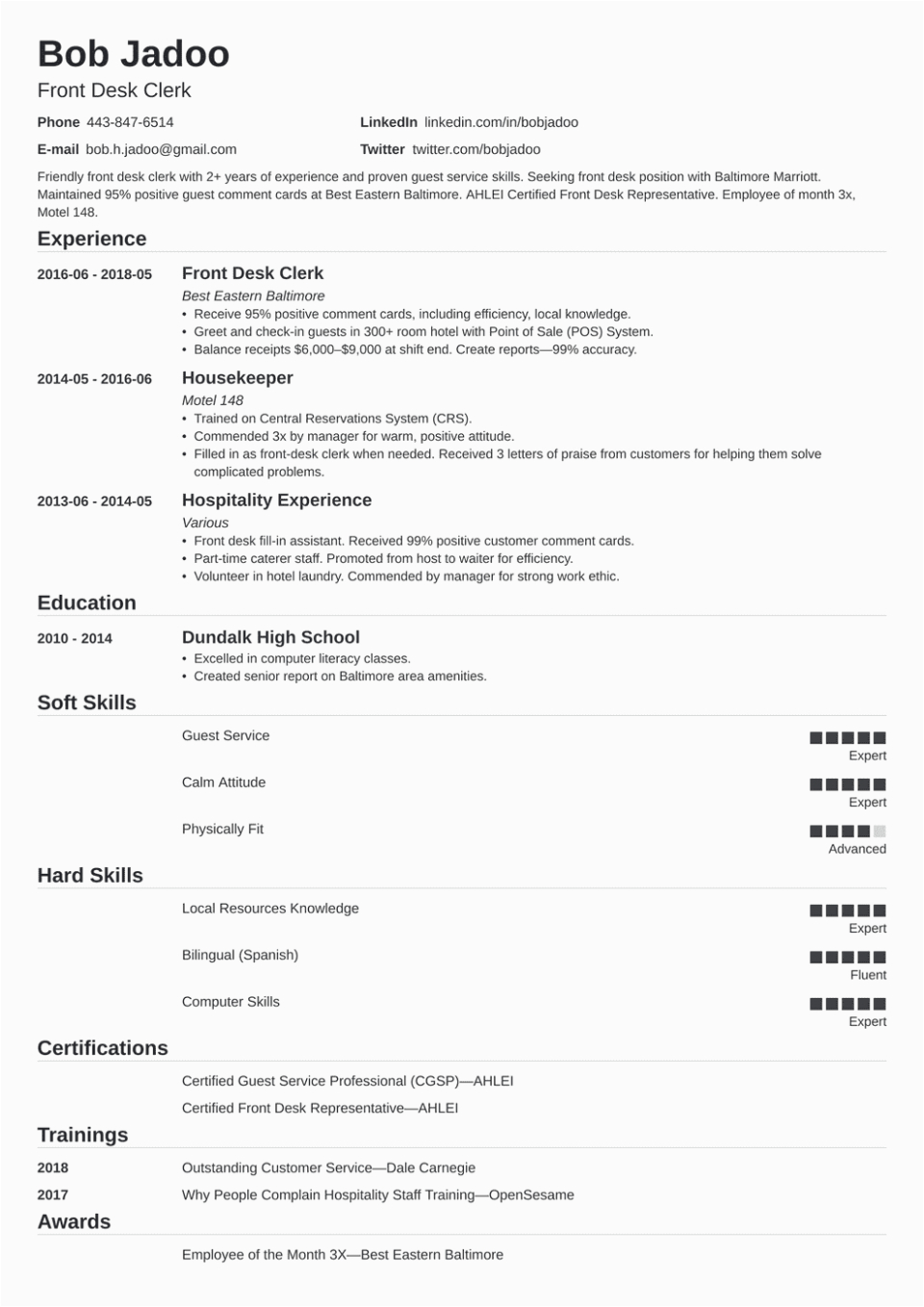 Resume Format In Word For Hotel Management Fresher BEST