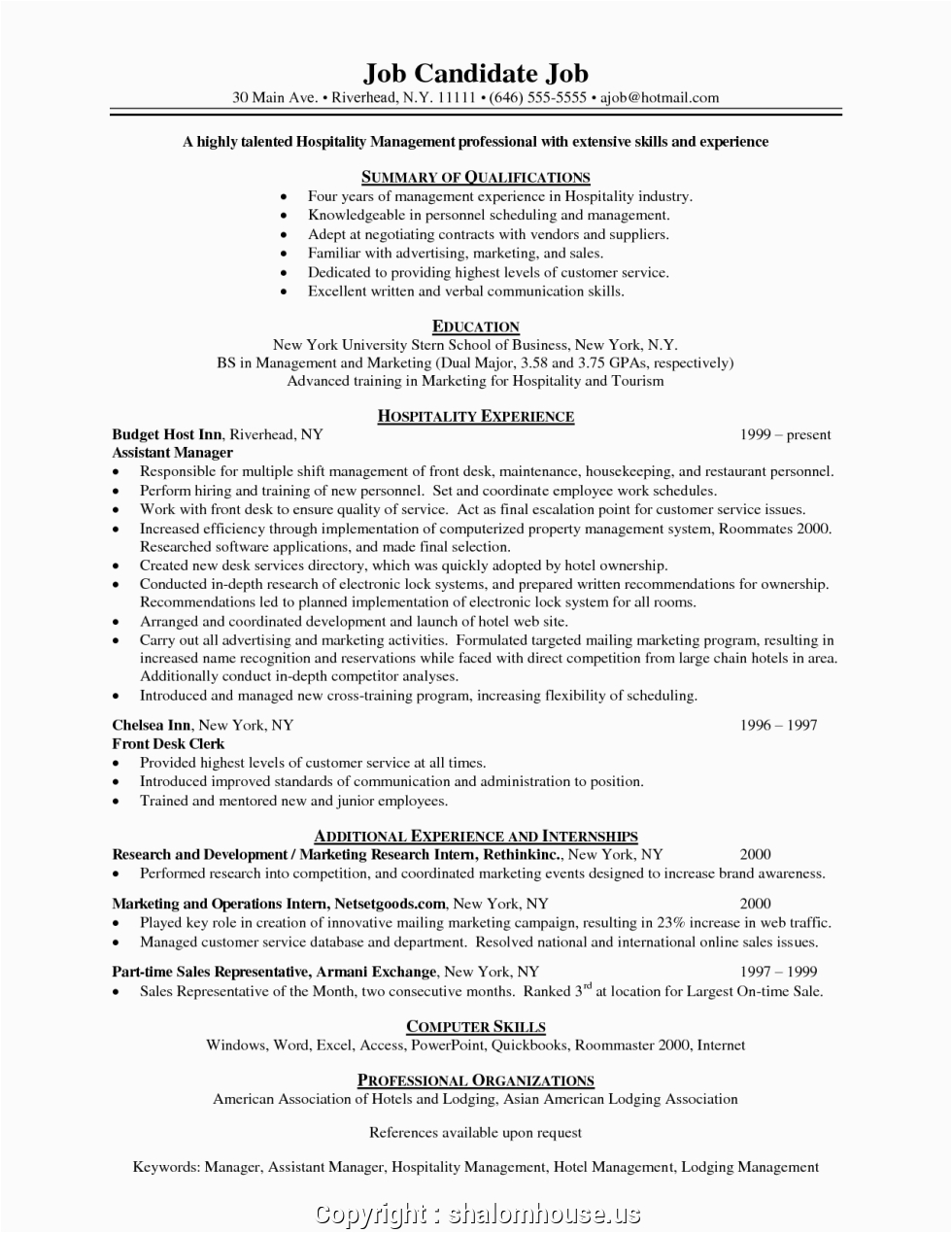 However, these are not your abandoned options for locating sample resume for hospitality and tourism management. Your instructor or academe will most assuredly have more than one resume template that you can use, and will be glad to put up to you. conveniently head more than to their Placement Office and you will have a template in no time. After all, it is their job to assist you locate employment, and in the same way as you are successful and a satisfied and strategically employed former student, it is after that a feather in their cap.