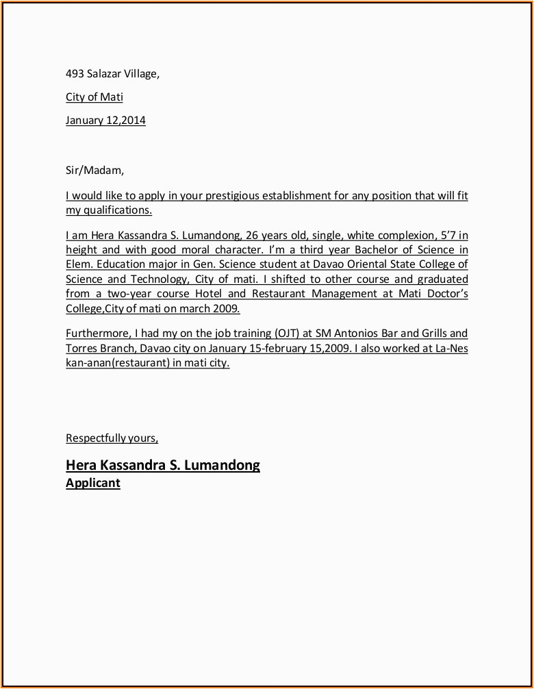 New Example Applicant Resume For Hrm Letter Sample For