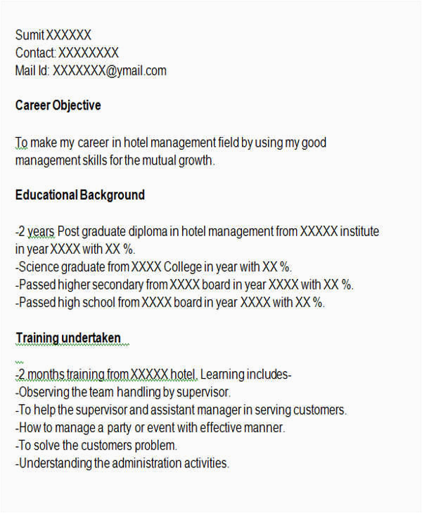 You could moreover download a template from the Internet; there are an abundance of websites where you will be adept to locate a sample resume for hotel management fresher, either to understandably peruse or to download and use.
