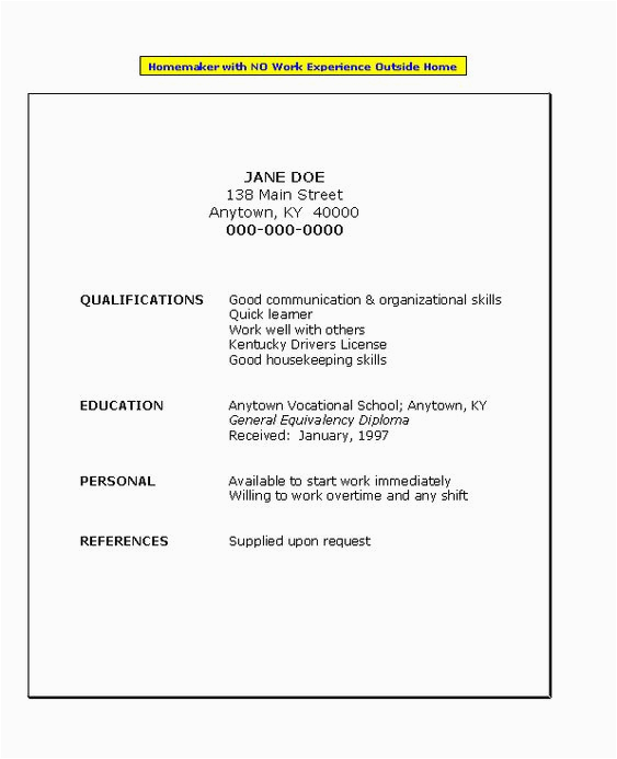 Resume For Housewife With No Work Experience Free Resume