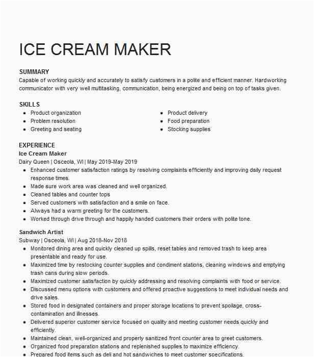 Ice Cream Maker Resume Samples