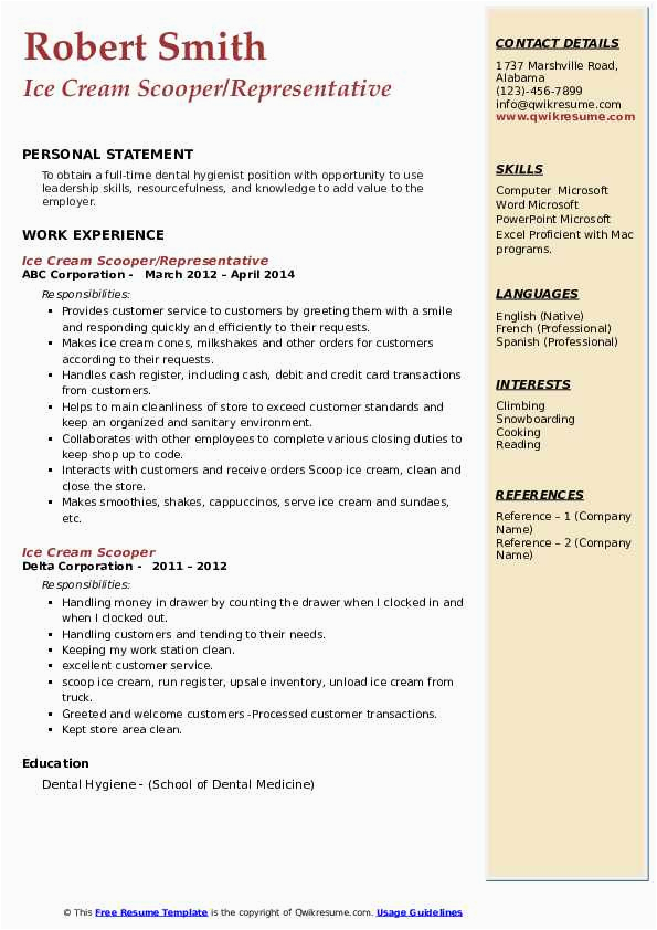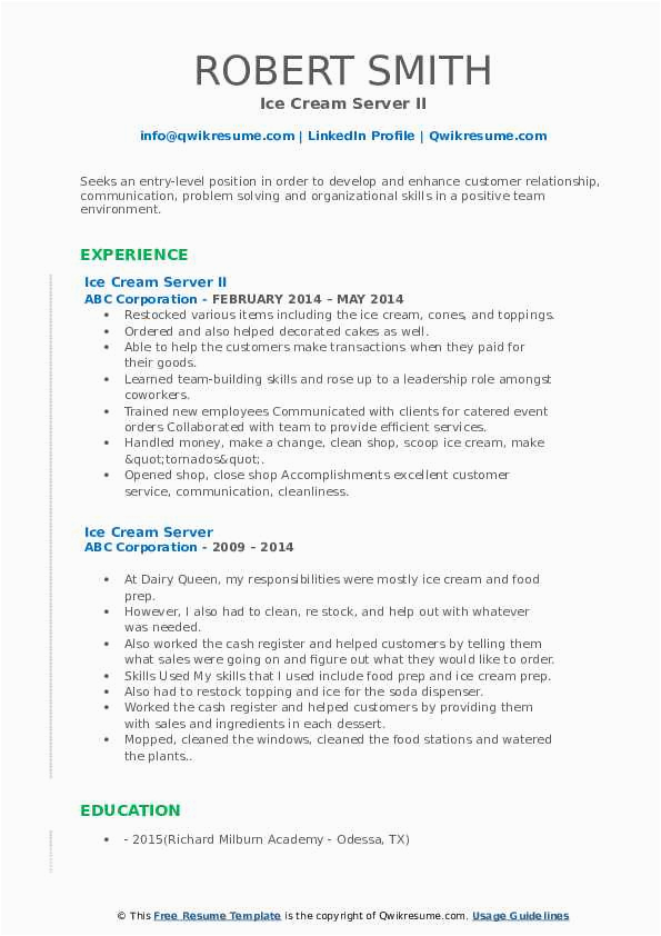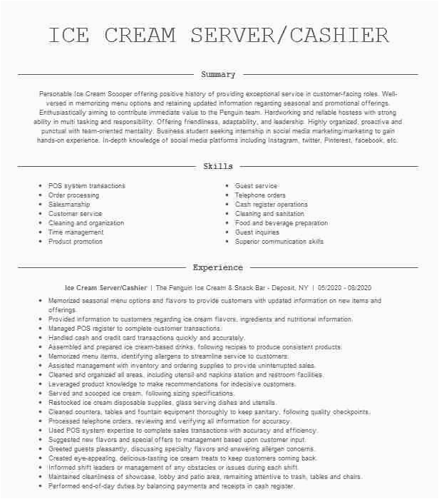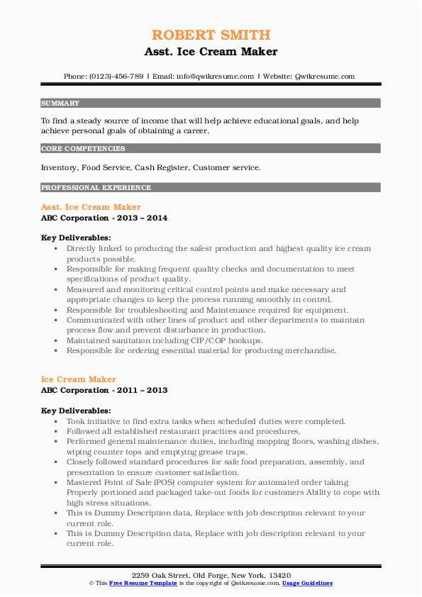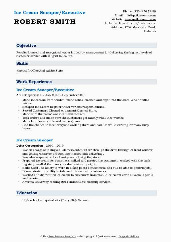 Behind you are searching for the perfect job, you will of course desire to put your best foot take up subsequently an fabulous and well-formatted resume. One exaggeration of assuring that you have such a resume is to download a sample resume for ice cream shop. These templates can provide you gone the perfect resume you are looking for or helpfully use them as a guide to make your own.