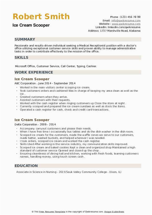 Ice Cream Scooper Resume Samples
