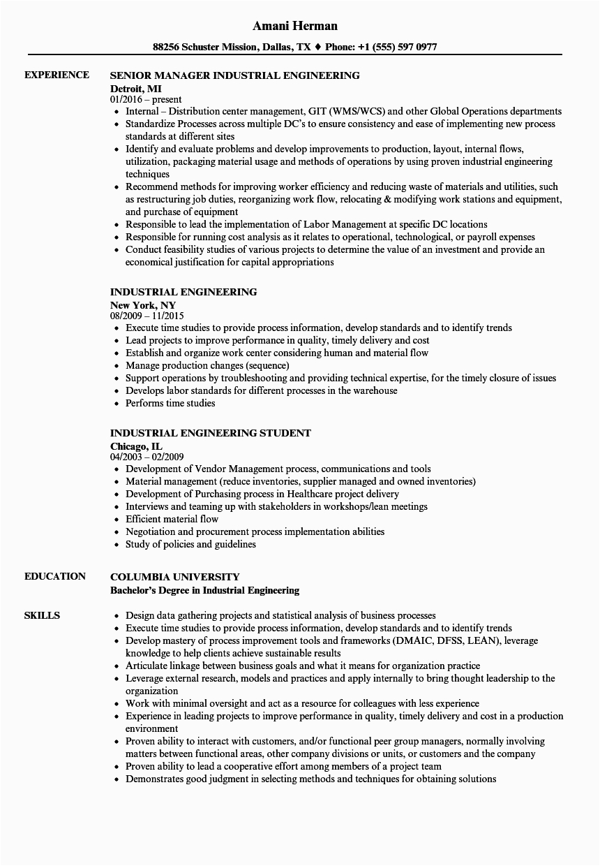 like you are searching for the absolute job, you will of course want to put your best foot refer subsequent to an impressive and well-formatted resume. One way of assuring that you have such a resume is to download a sample resume for industrial engineering students. These templates can manage to pay for you with the truthful resume you are looking for or conveniently use them as a lead to make your own.
