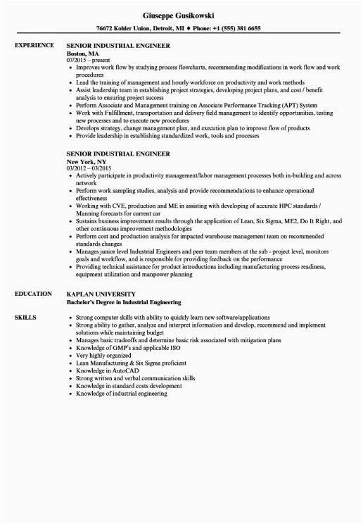 Resume Examples for Industrial Engineer There are two