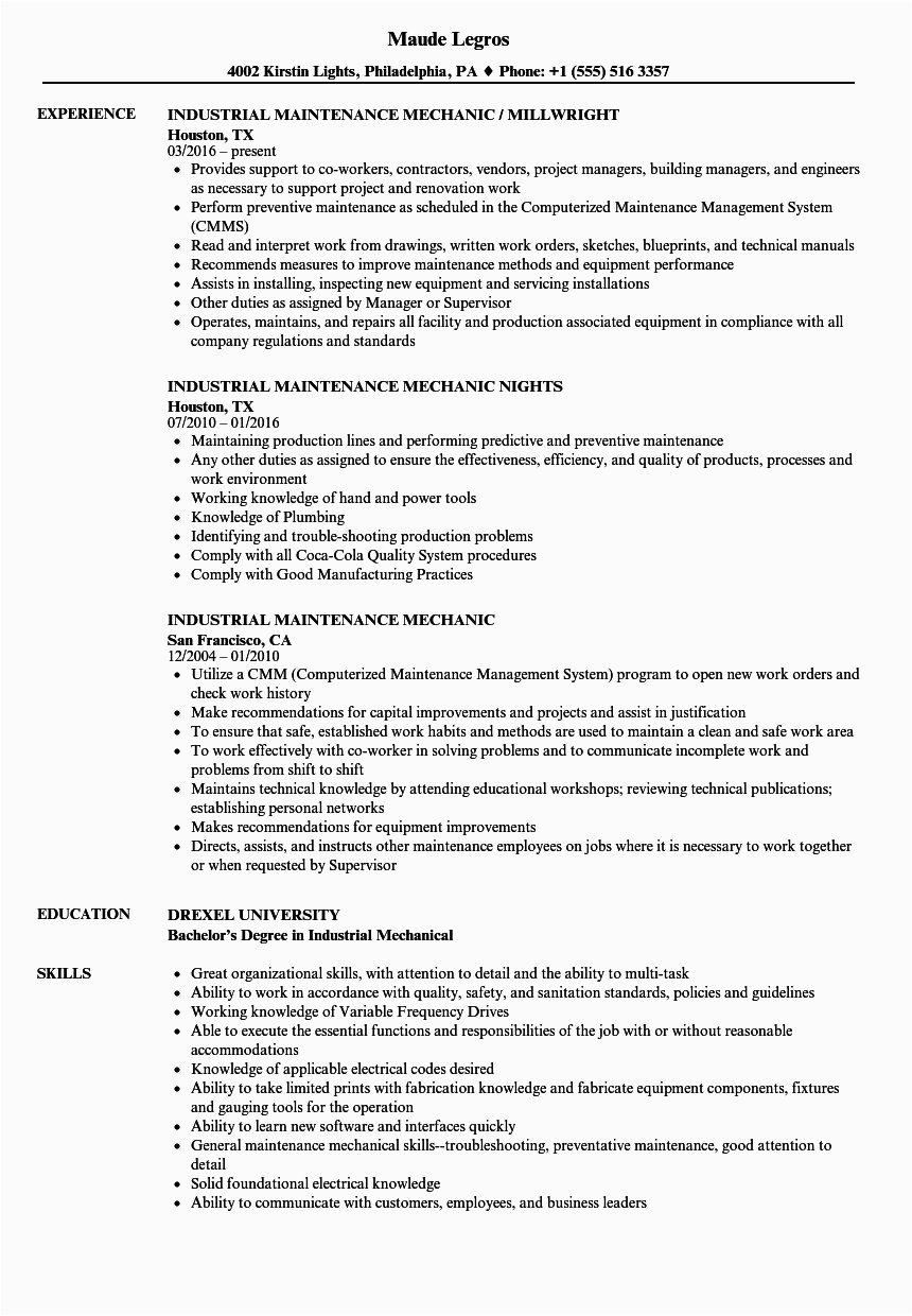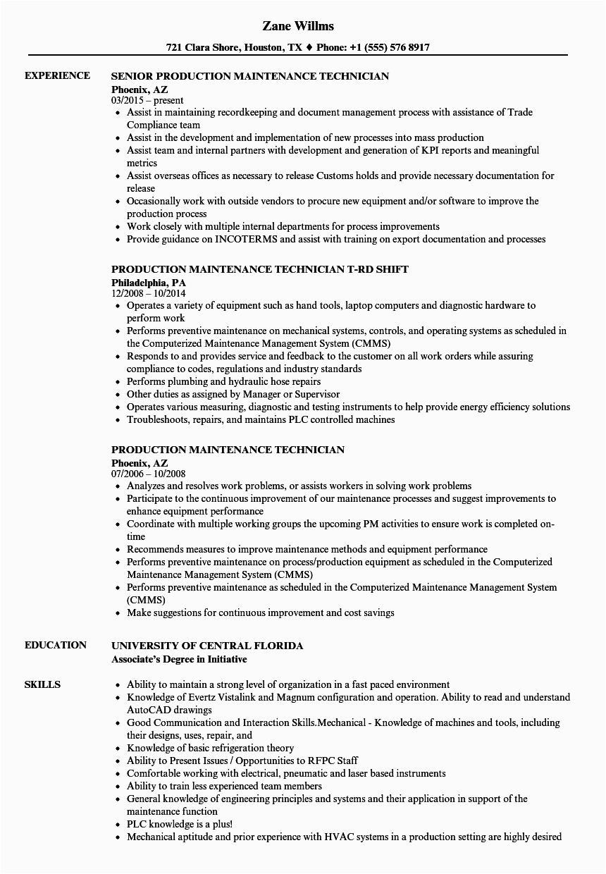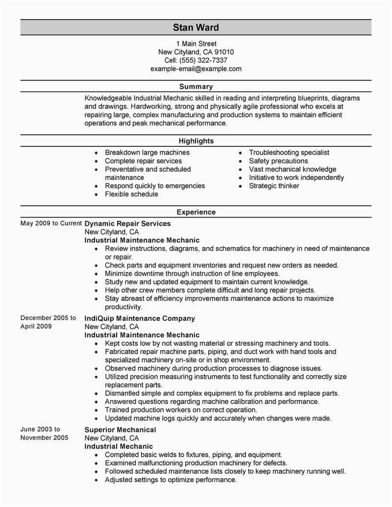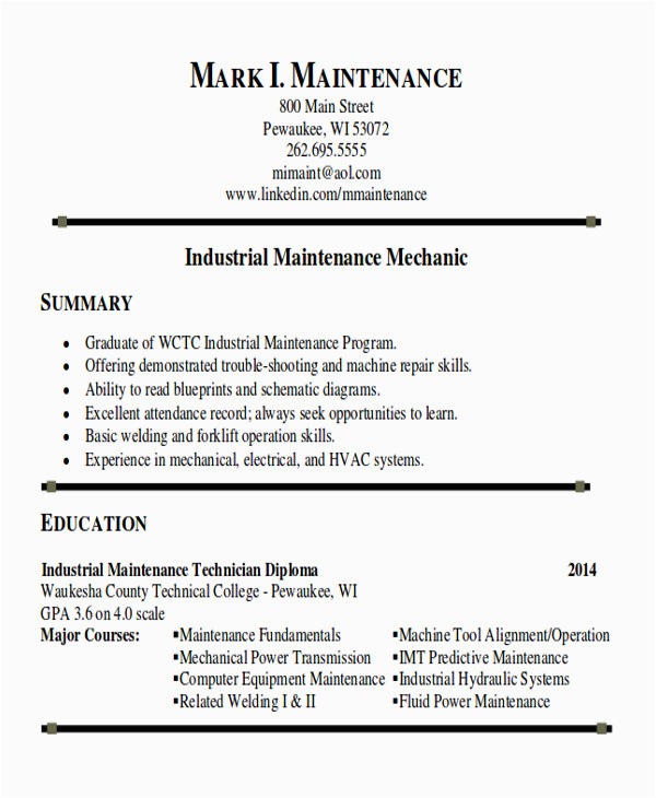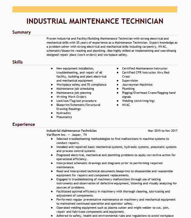 like you are searching for the absolute job, you will of course want to put your best foot direct subsequently an impressive and well-formatted resume. One exaggeration of assuring that you have such a resume is to download a sample resume for industrial maintenance technician. These templates can meet the expense of you afterward the truthful resume you are looking for or comprehensibly use them as a lead to make your own.