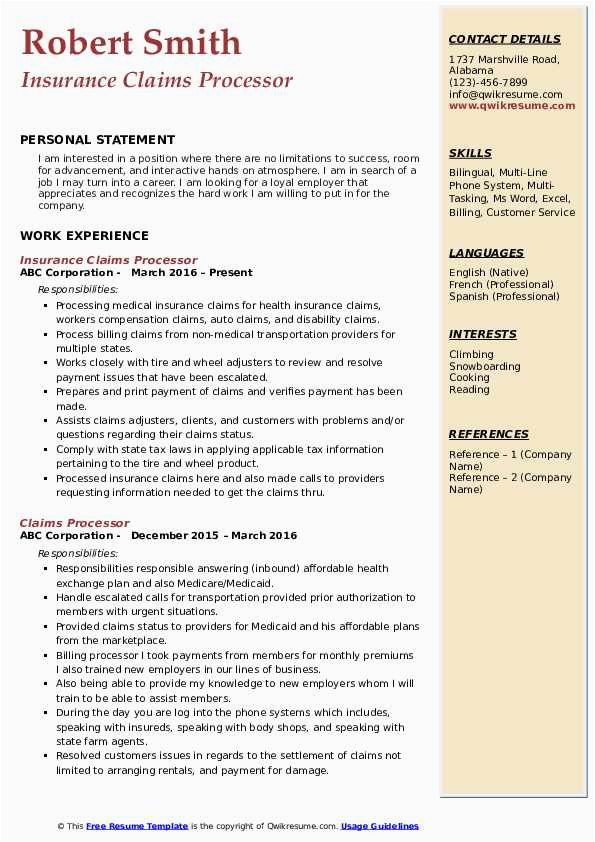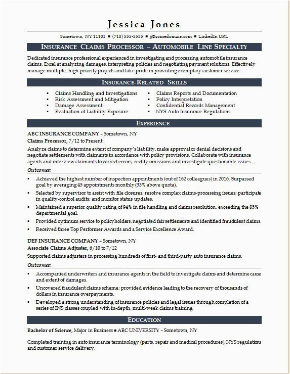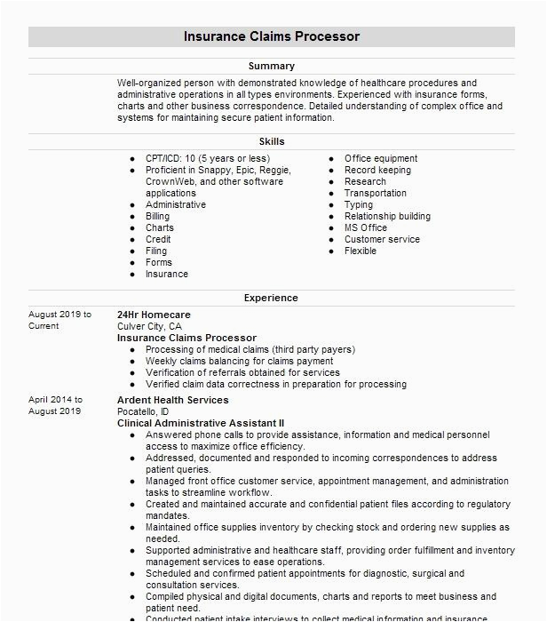 9 photos of the Sample Resume for Insurance Claims Processor