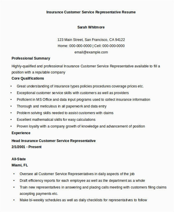 9 photos of the Sample Resume for Insurance Customer Service Rep