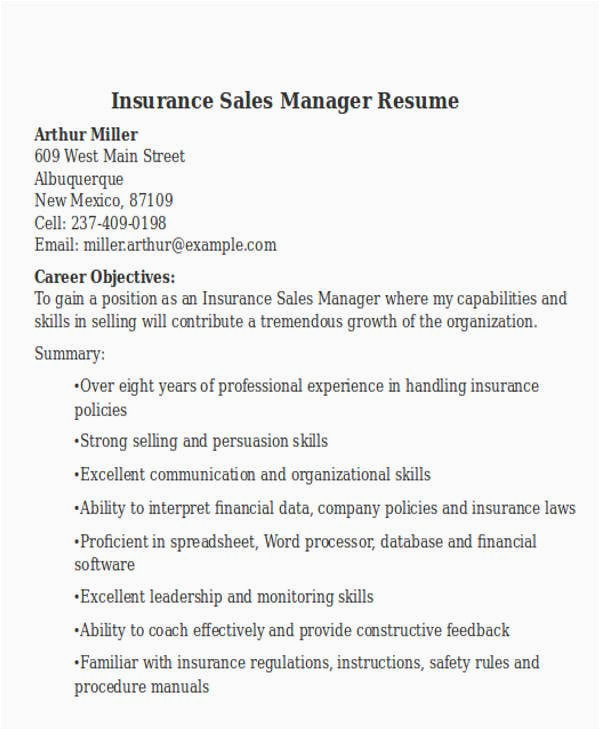 Professional Sales Manager Insurance Resume 15 Insurance