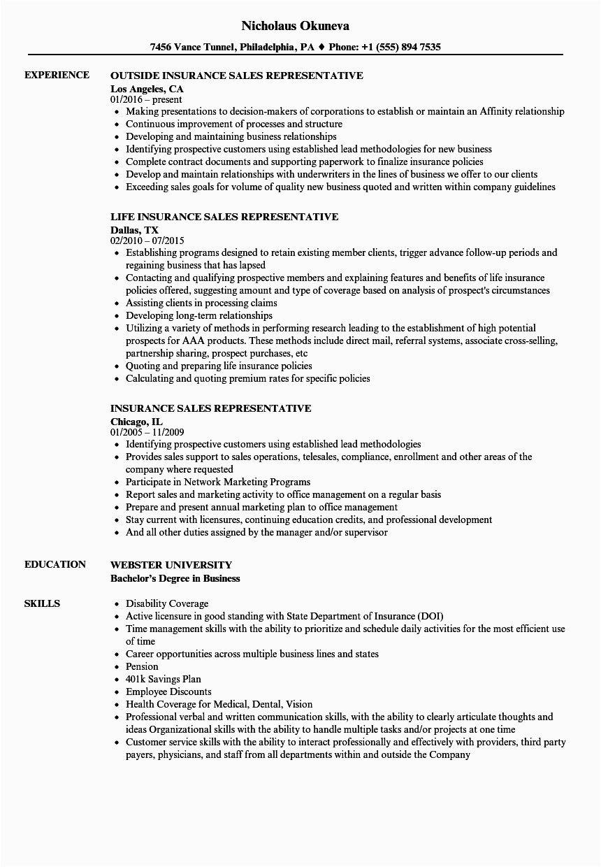 Insurance Sales Representative Resume Samples