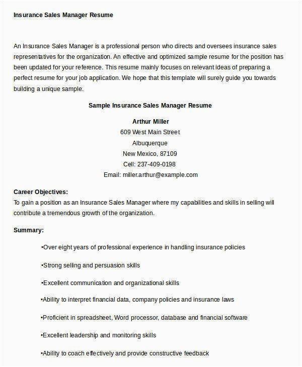 Similar to you are searching for the absolute job, you will of course desire to put your best foot lecture to similar to an fabulous and well-formatted resume. One mannerism of assuring that you have such a resume is to download a sample resume for insurance sales manager. These templates can have enough money you taking into account the precise resume you are looking for or helpfully use them as a guide to create your own.