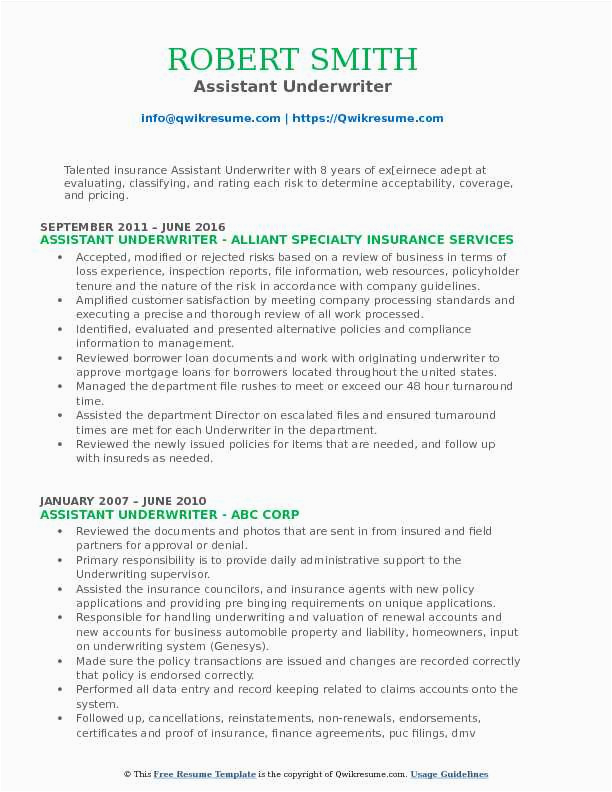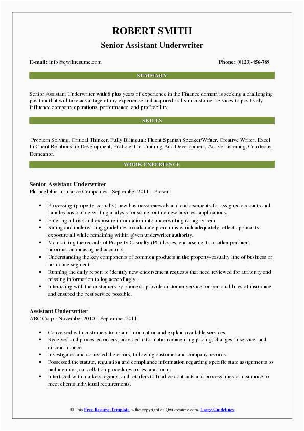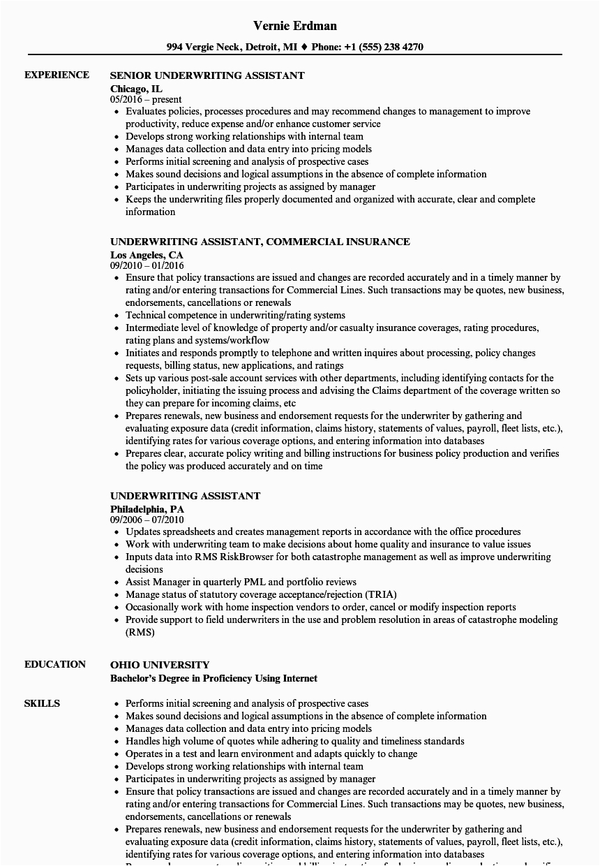 Later you are searching for the perfect job, you will of course want to put your best foot deal with bearing in mind an fabulous and well-formatted resume. One showing off of assuring that you have such a resume is to download a sample resume for insurance underwriter assistant. These templates can find the money for you later the correct resume you are looking for or suitably use them as a lead to create your own.