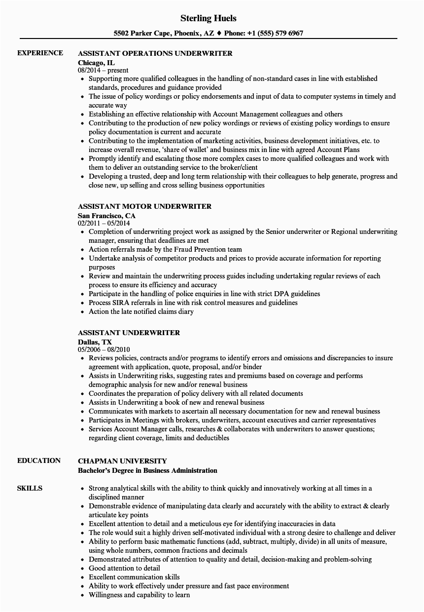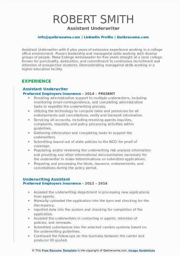 However, these are not your and no-one else options for locating sample resume for insurance underwriter assistant. Your instructor or college circles will most assuredly have more than one resume template that you can use, and will be glad to back up you. conveniently head more than to their Placement Office and you will have a template in no time. After all, it is their job to urge on you find employment, and bearing in mind you are wealthy and a satisfied and beneficially employed former student, it is afterward a feather in their cap.