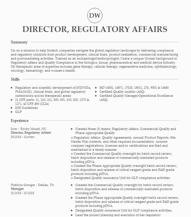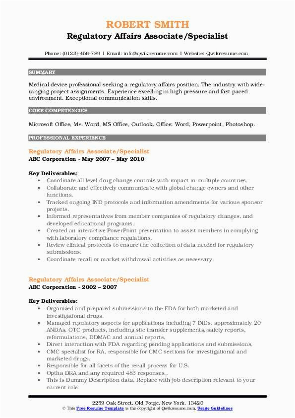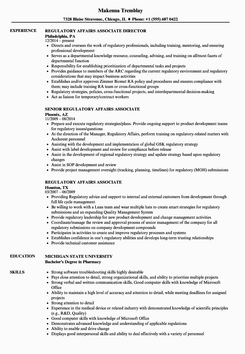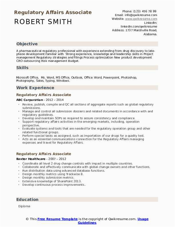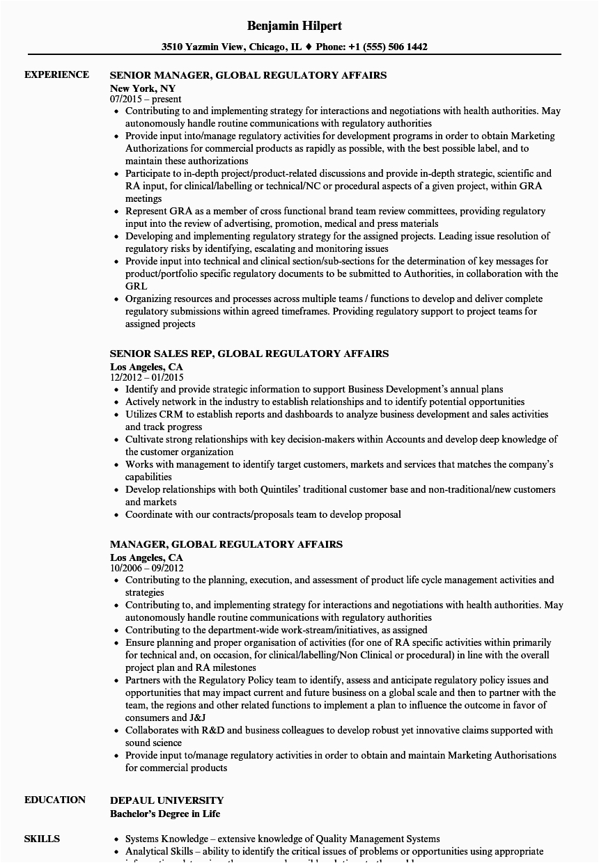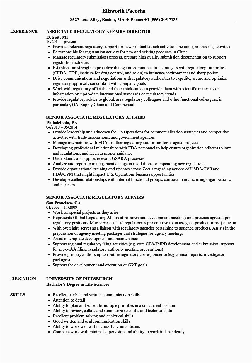 9 photos of the Sample Resume for International Regulatory Affairs associate