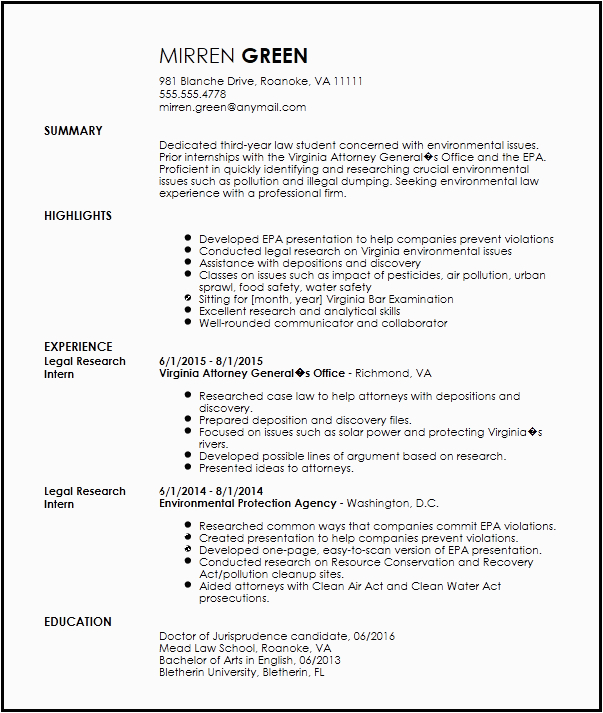 Law Internship Resume Examples Best Resume Examples