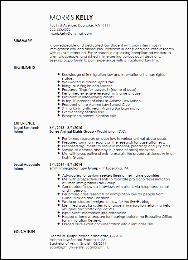 And for every website you come across that has a sample resume for internship in law firm, you will locate that there are specialized templates for just not quite any type of resume you wish to create. You can find a sample resume for internship in law firm for an entry-level position, and you can locate a template for just very nearly any type of job or career you are looking for.