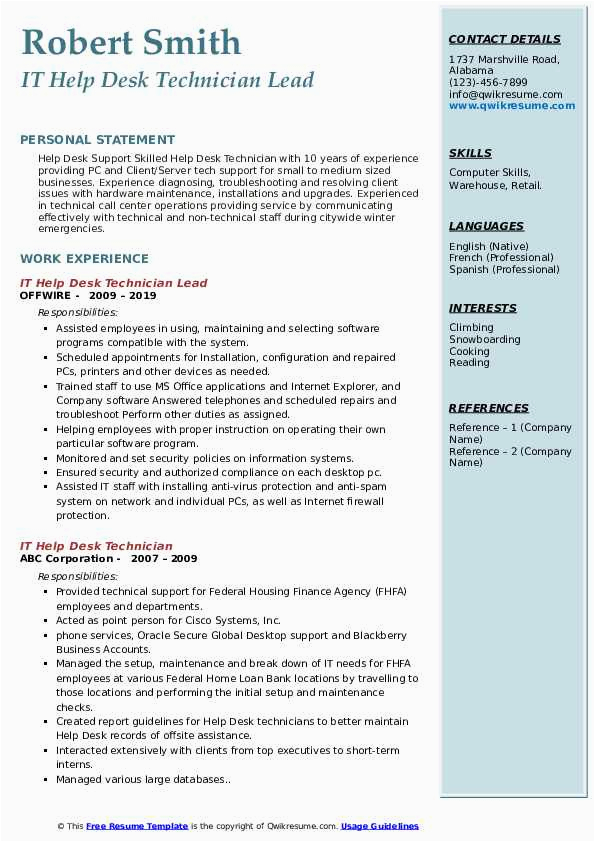 However, these are not your solitary options for locating sample resume for it help desk technician. Your college or academic world will most assuredly have more than one resume template that you can use, and will be glad to incite you. conveniently head beyond to their Placement Office and you will have a template in no time. After all, it is their job to urge on you find employment, and next you are successful and a satisfied and valuably employed former student, it is next a feather in their cap.